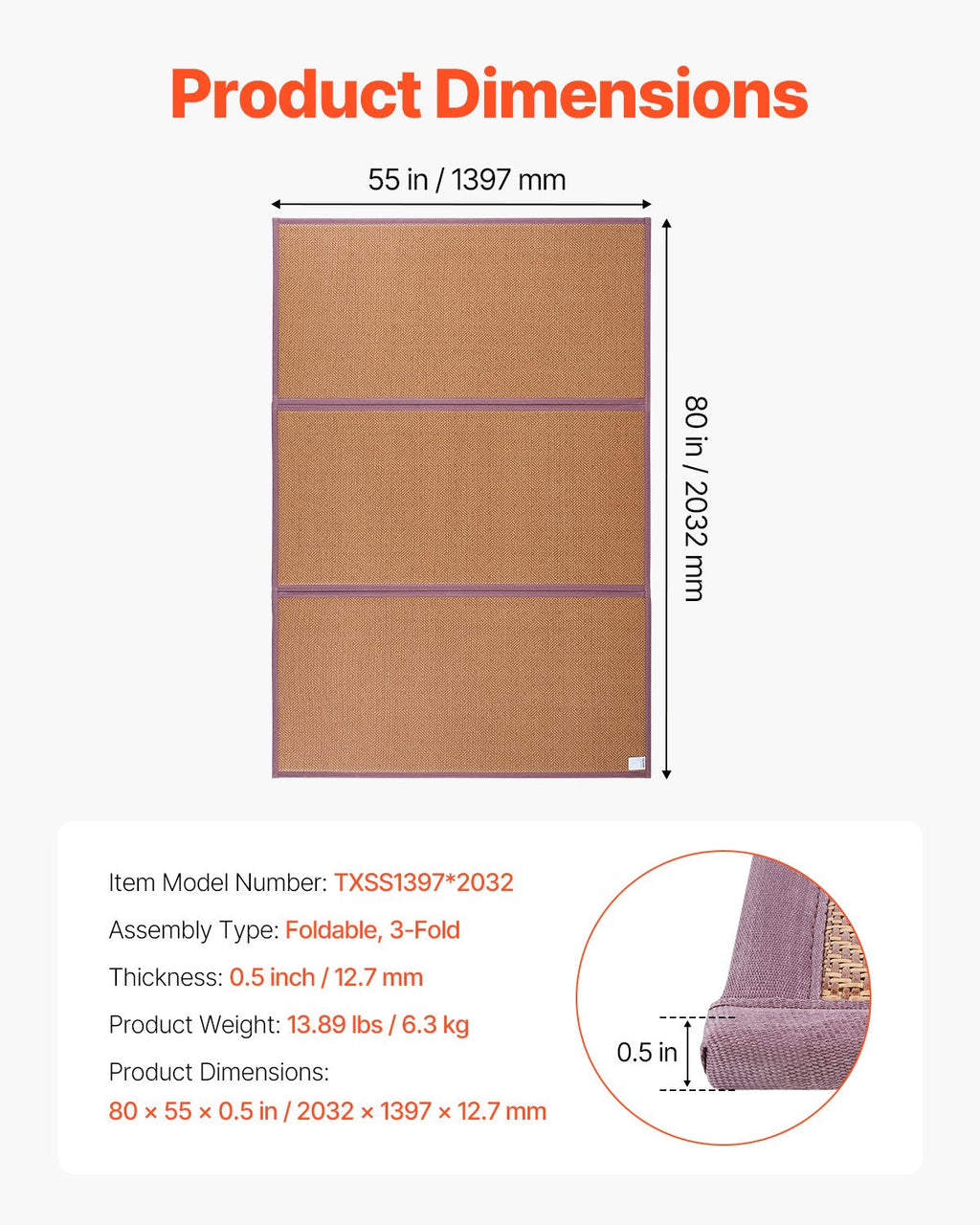 The VEVOR Japanese Tatami Mat 80 x 55 in Foldable Natural Rattan Tatami Mattress offers comfort, practicality, and a traditional touch for your living space. Made from natural rattan, this foldable tatami mattress combines easy maintenance with a non-slip design to ensure a restful sleep. The space-saving, 3-fold design makes it convenient to store when not in use. Ideal for creating a cozy and fresh environment, this mat is perfect for homes, apartments, or any space where you want to enjoy the benefits of natural materials and superior comfort.