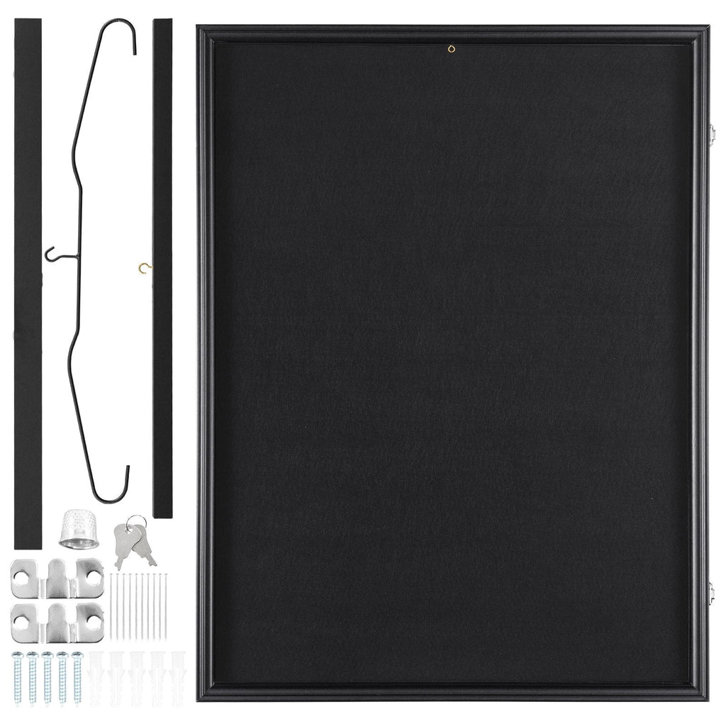 Showcase and protect your sports memorabilia with the VEVOR Jersey Display Frame Case, designed to preserve your favorite jerseys in style. Measuring 24 x 32 x 1.5 inches, this large shadow box features a lockable door and 98% UV-protection PC glass to prevent fading and dust buildup. The matte black frame and black felt backing create a professional, gallery-style look. Perfect for displaying baseball, basketball, football, or hockey jerseys, this case includes hangers and hardware for easy installation and comes packaged for safe delivery.