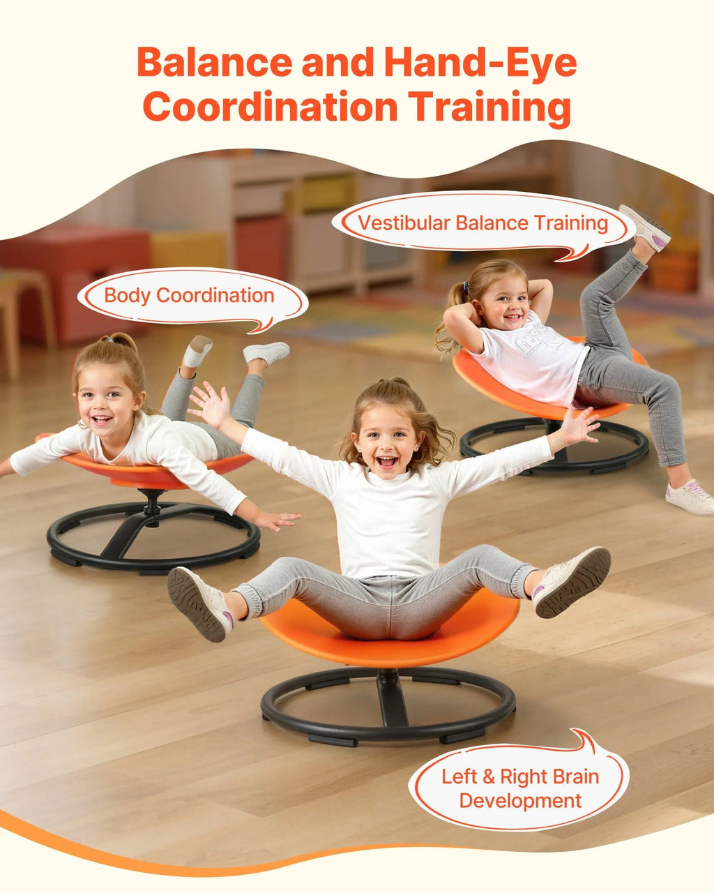 360° Swivel Fun: Spinning stimulates the vestibular system, strengthens core muscles, and improves coordination and balance, supporting brain development.