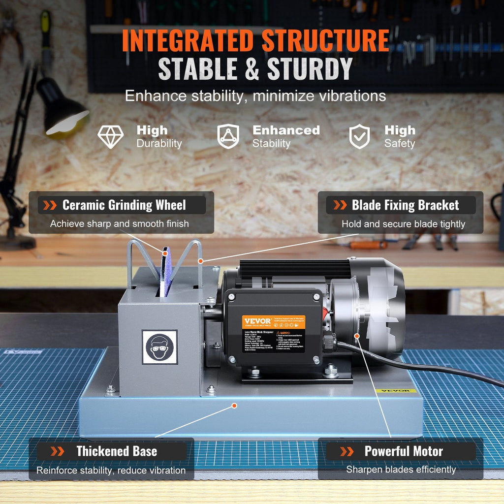 Rock-Solid Stability: The solid construction ensures no vibration or wobbling during operation, providing precision sharpening for all blade types.
