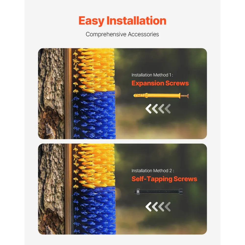 VEVOR Livestock Scratching Brush 3PCS 20 in is a durable and practical itch-relief grooming tool designed for horses and other livestock. Made with high-quality PBT bristles and a strong PP cylinder, it allows animals to comfortably scratch and relieve irritation while supporting healthier coat maintenance. With a longer 20-inch design and the ability to connect multiple brushes for larger installations, it is ideal for barns, pens, and outdoor areas. The secure mounting structure ensures stable and reliable use in various farm environments.