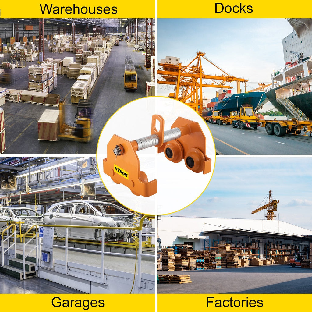 The VEVOR Manual Trolley delivers powerful, heavy-duty performance with an exceptional load capacity of 16,500 lbs (7.5 tons). Engineered for industrial-grade applications, it features an adjustable width from 4.5 to 8 inches, allowing compatibility with various I-beam sizes. The dual-wheel design ensures smooth and stable travel along both straight and curved beam tracks, making it ideal for garage hoists, workshops, and warehouse setups. Constructed from high-strength steel with a protective powder-coated finish, this trolley is built for durability, corrosion resistance, and long-term use in demanding environments.