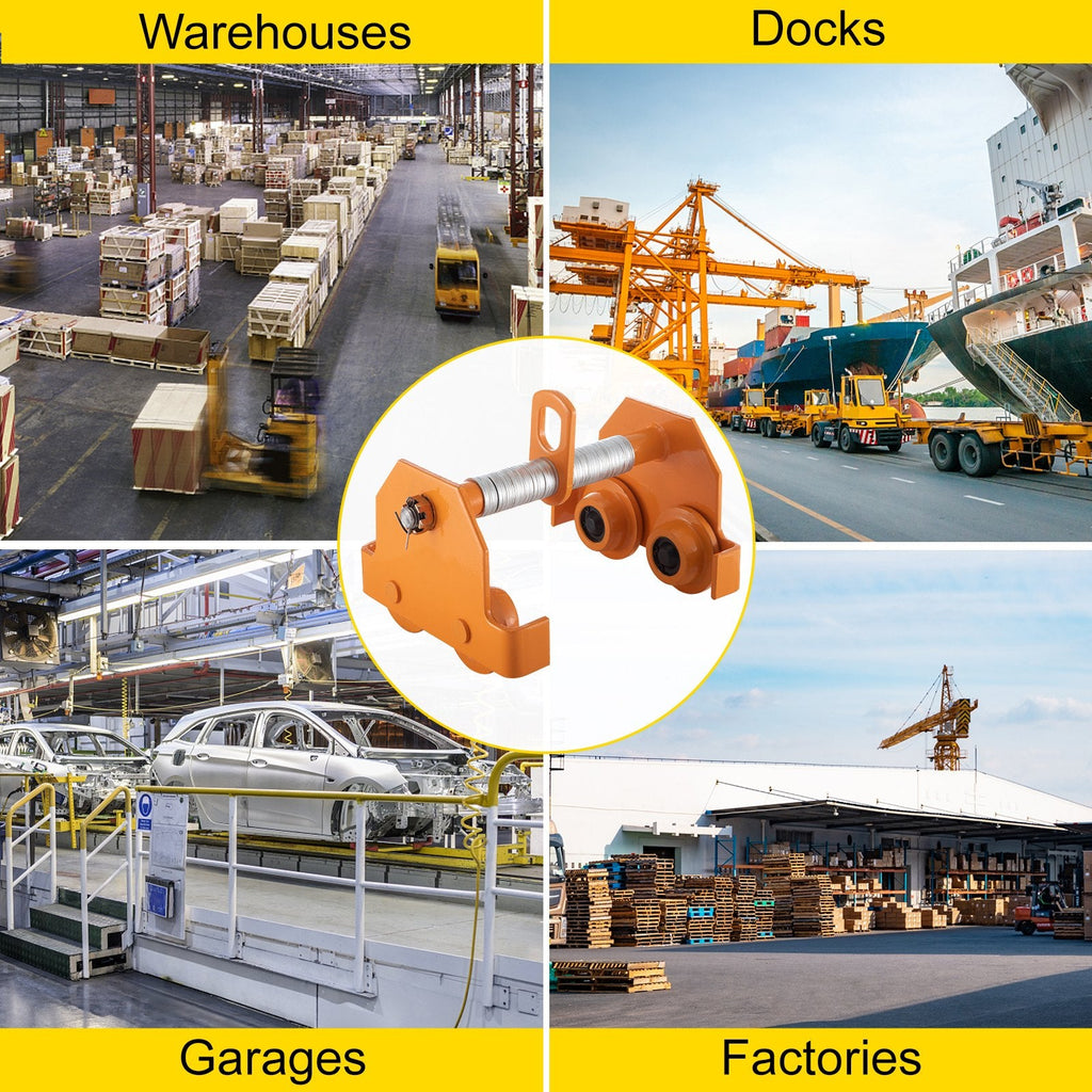 The VEVOR Manual Trolley delivers heavy-duty performance with a robust load capacity of 3300 lbs (1.5 tons). Its adjustable design fits beam widths ranging from 2.5 to 8 inches, making it compatible with both straight and curved I beams. Featuring dual wheels for smooth, efficient movement along beam tracks, this trolley is constructed from powder-coated steel for enhanced durability and corrosion resistance. Ideal for garages, workshops, and industrial environments, it provides reliable and stable support for hoisting and material handling tasks.