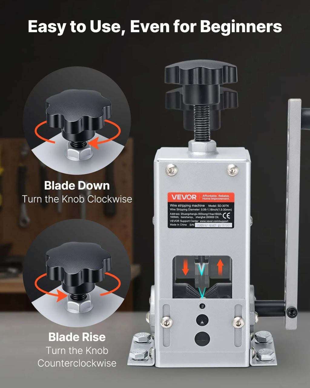 Easy Setup & Operation: Two wire guides for quick diameter matching and adjustable blade depth make operation simple, even for beginners.