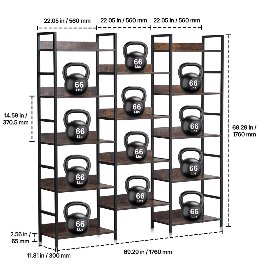 Solid and Reliable: Built with a strong metal frame and rustic wood shelves, this bookshelf is durable and designed to withstand heavy use.