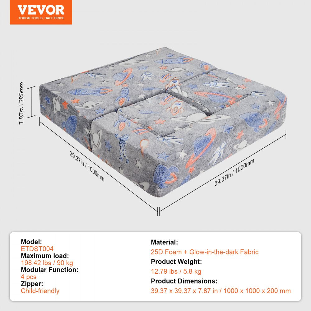 The VEVOR Modular Kids Play Couch is a premium, customizable play sofa designed for toddlers. Comprising 4 geometric components, this couch offers endless possibilities for creative play and relaxation. Made with 25D pure sponge and a glow-in-the-dark fabric, it provides both comfort and fun for kids. The modular function allows for easy reconfiguration to fit your child's needs. With a spacious design, the couch ensures plenty of room for play and rest. It’s double-certified for safety and peace of mind, ensuring a secure environment for your little one. The child-friendly zipper makes it easy for kids to interact with while being safe to use.