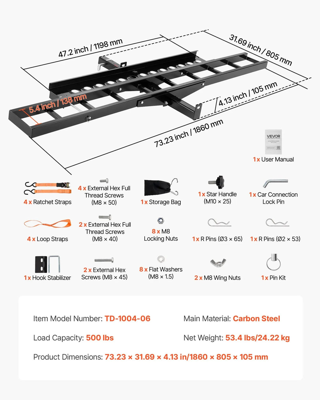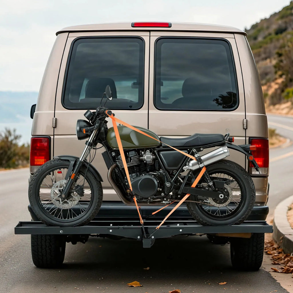 Experience secure, stable, and convenient motorcycle transport with the VEVOR Heavy-Duty Motorcycle Carrier. Built from reinforced steel and designed for 2-inch hitch receivers, this carrier supports up to 500 lbs—perfect for dirt bikes, scooters, e-bikes, and more. A detachable 47" ramp, included straps, and enhanced stabilization ensure smooth solo loading and safe hauling on every trip.