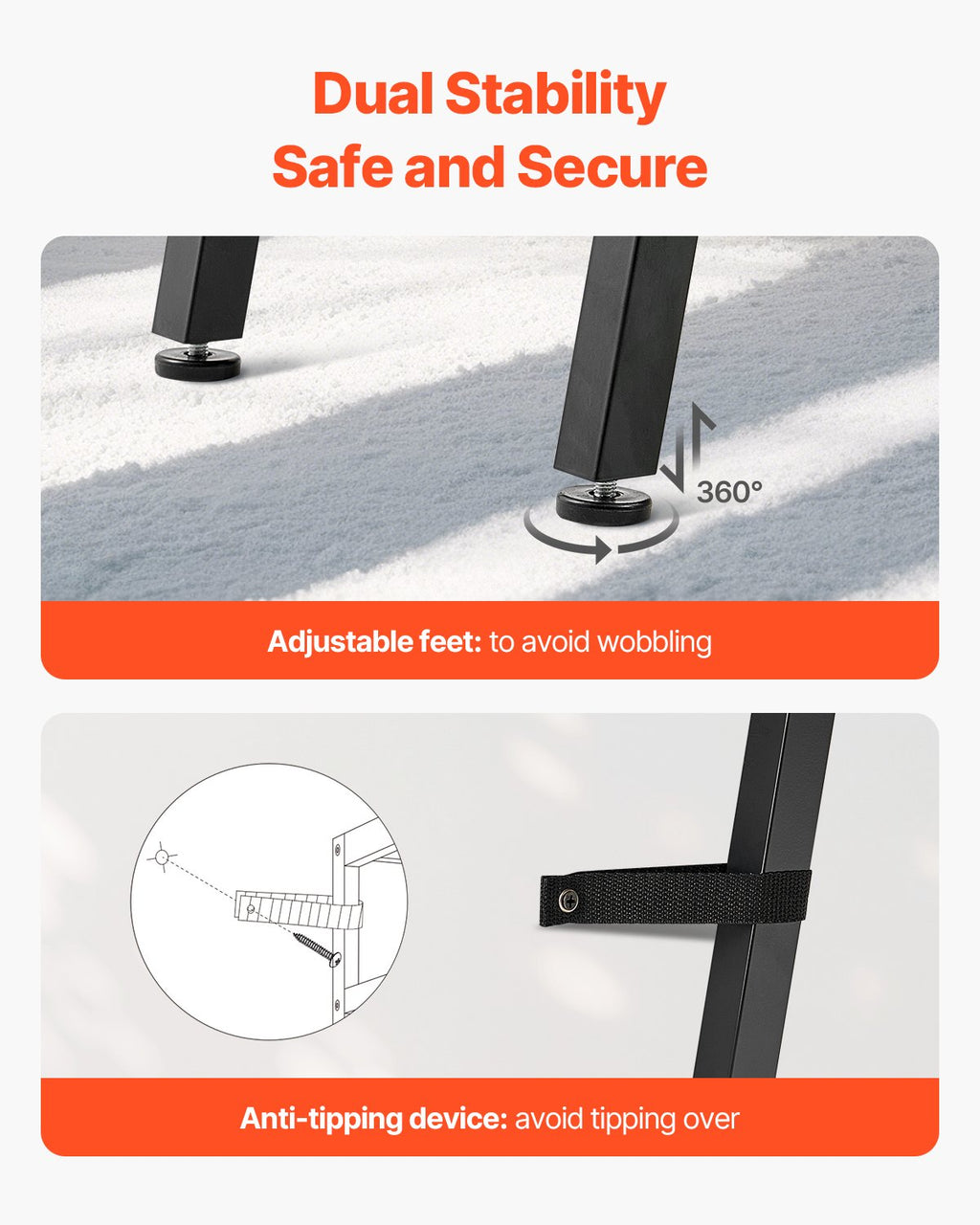 Adjustable Feet: Adjustable foot pads ensure the table stays level, even on uneven floors.