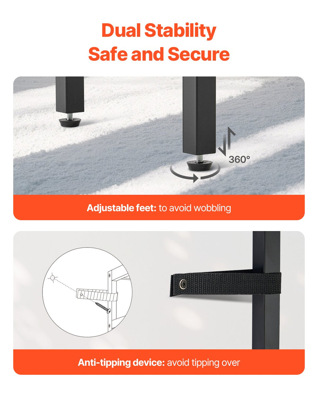 Anti-Tip Feature: Safely secures the table to the wall to prevent tipping.