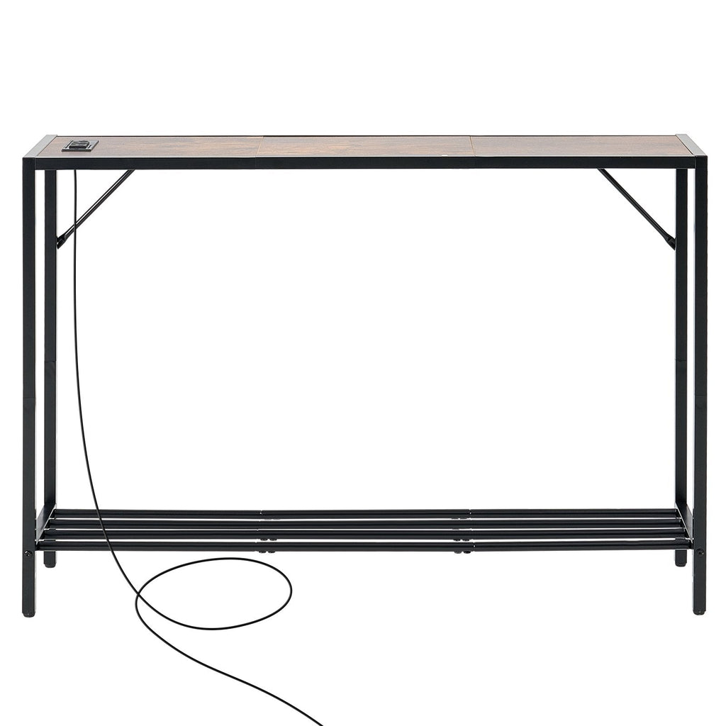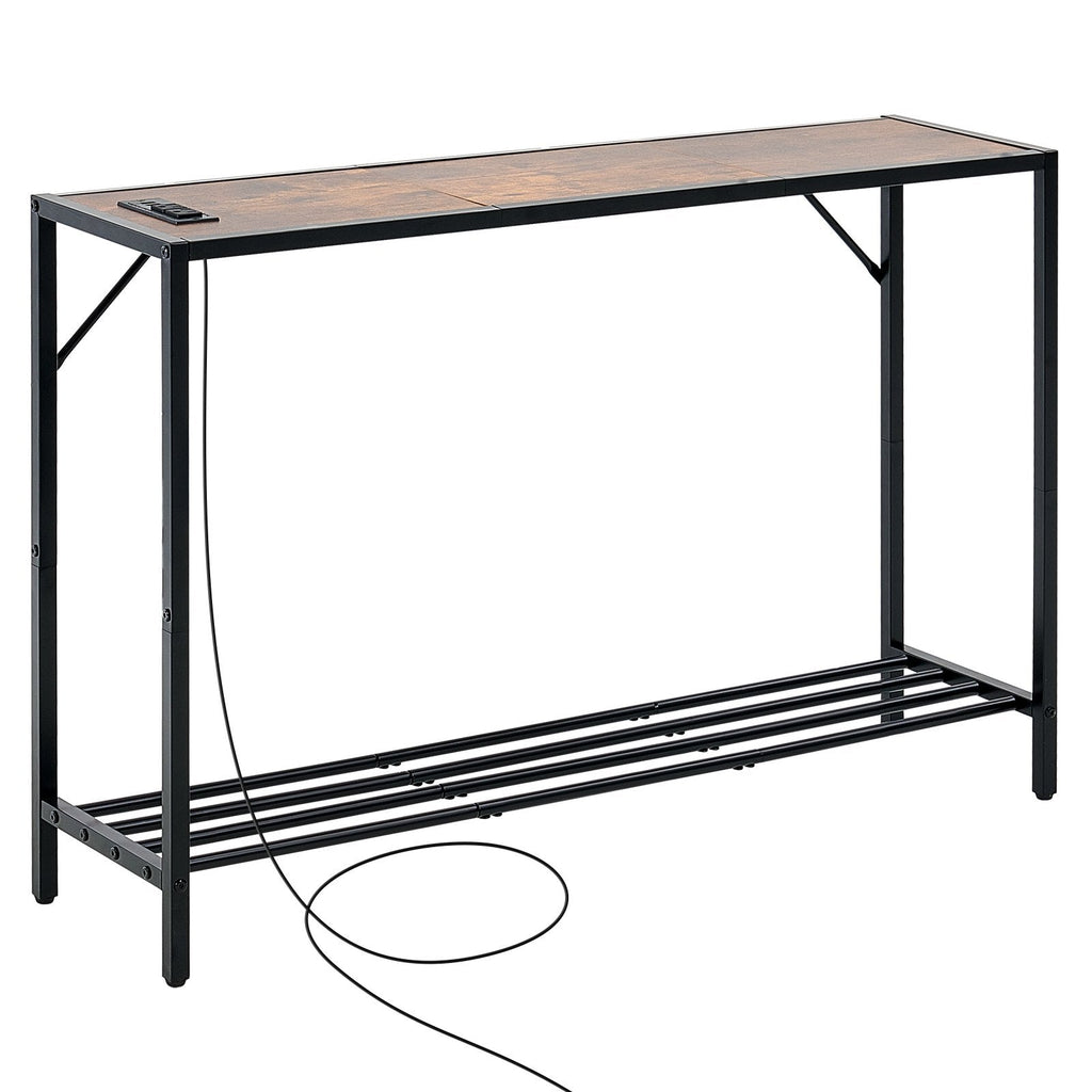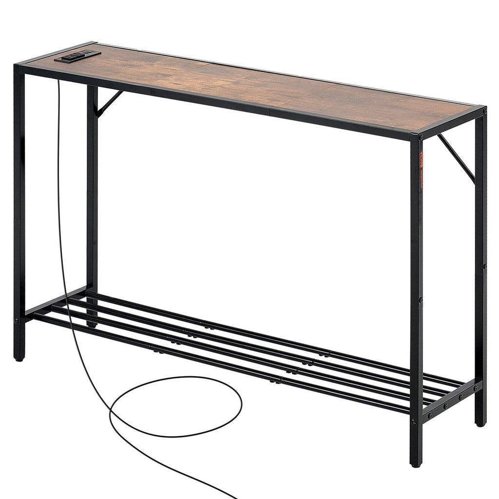 Maximize space and functionality with the VEVOR Narrow Console Sofa Table. Perfect for entryways and living rooms, this stylish and compact table features convenient charging options, including USB ports and three-prong sockets. Built with a sturdy carbon steel frame and MDF shelves, it's designed to blend seamlessly into any decor while offering durable storage and a weight capacity of up to 100 lbs.