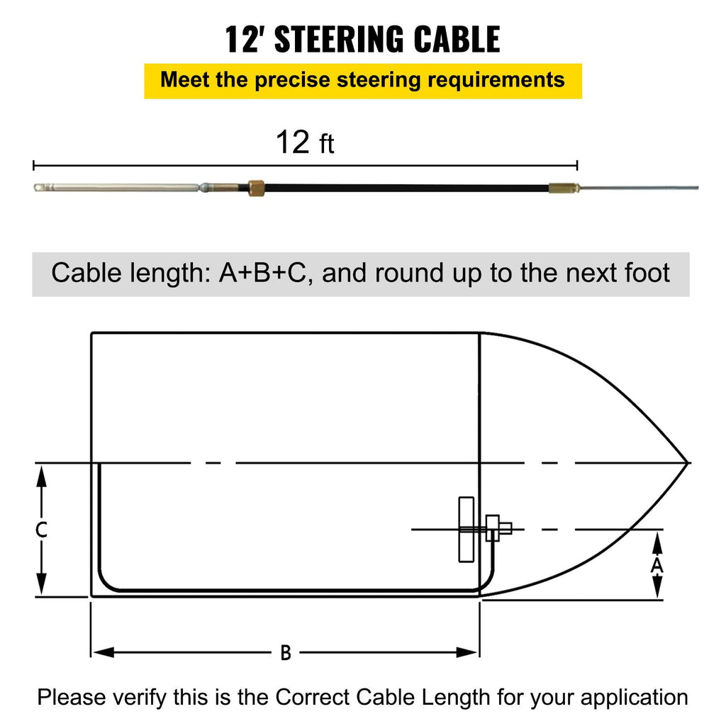 12 Ft Durable Steering Cable: Flexible and corrosion-resistant cable ensures smooth steering over time