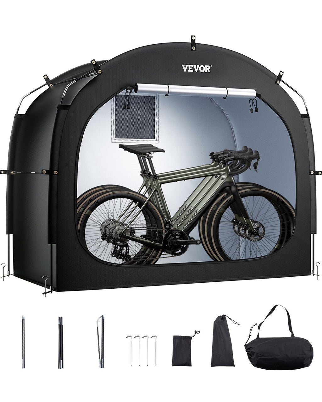 Protect your bicycles from the elements with the VEVOR Outdoor Bike Storage Tent. Designed to hold 3 to 4 bikes, this spacious and waterproof tent is perfect for safeguarding your bikes from rain, sun, and wind. Constructed with durable Oxford fabric and reinforced with fiberglass support poles, the tent is built to withstand harsh weather conditions. Featuring a high-quality zipper for easy access and a ventilated window for airflow, this bike storage solution ensures your bikes stay dry and secure. With a convenient single-door design and ample space, it offers peace of mind for cyclists looking for a reliable outdoor storage option.