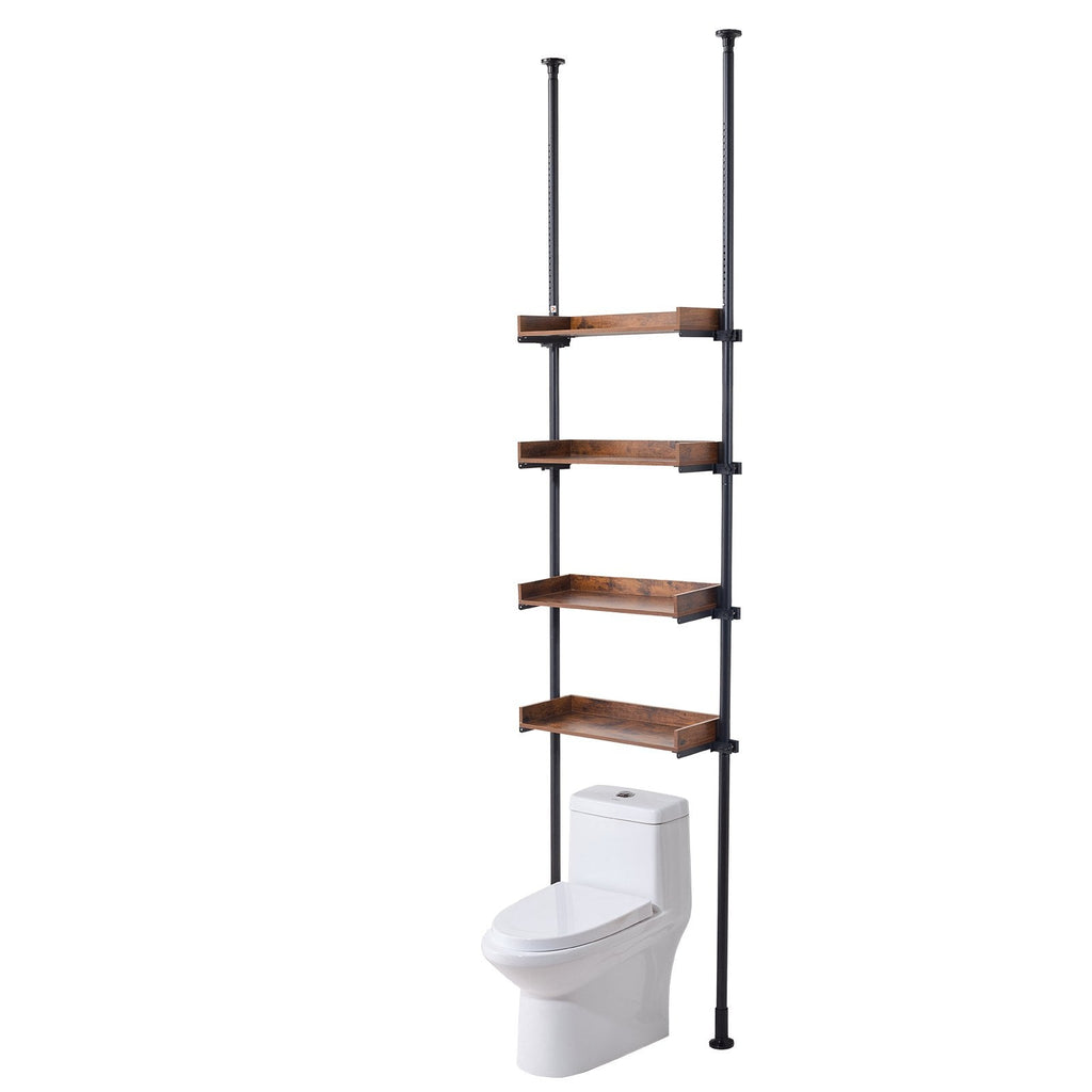 Maximize your bathroom space with the VEVOR Over the Toilet Storage 4-Tier Bathroom Shelf Rack. This tension rod storage rack offers adjustable wooden shelves and a sturdy, stable structure that provides reliable storage for your bathroom essentials. With easy installation and multifunctional use, it is designed to fit over most toilets, offering an efficient and space-saving solution. Made from aluminum alloy and low-carbon steel, it is built to withstand daily use and can support up to 30 lbs per shelf, making it ideal for toiletries, towels, and other bathroom items. The VEVOR bathroom shelf is an elegant and practical addition to any bathroom.