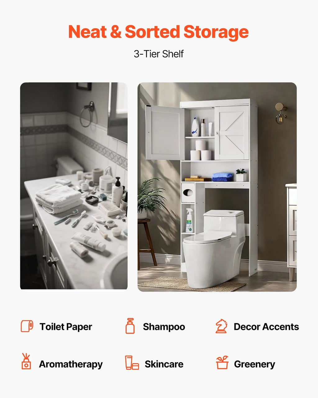 Optimize your bathroom storage with the VEVOR Over The Toilet Storage Cabinet, designed to save space while keeping essentials organized and accessible. Perfect for modern bathrooms, laundry rooms, or bedrooms, this tall, slim cabinet combines functionality with style.