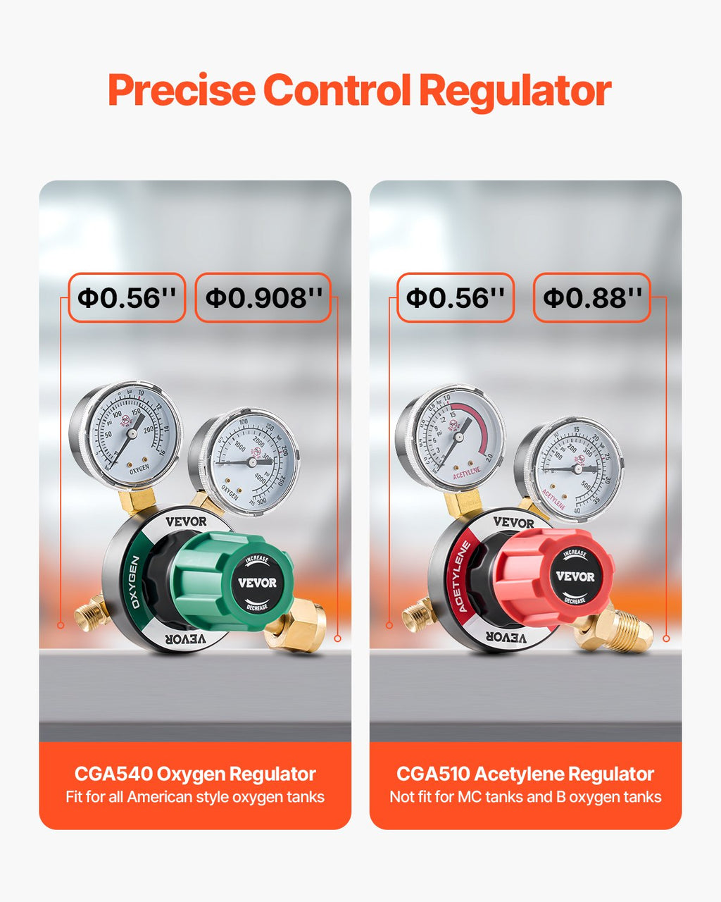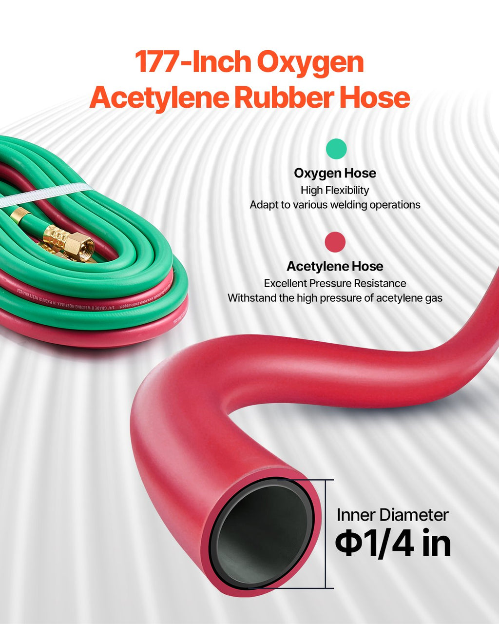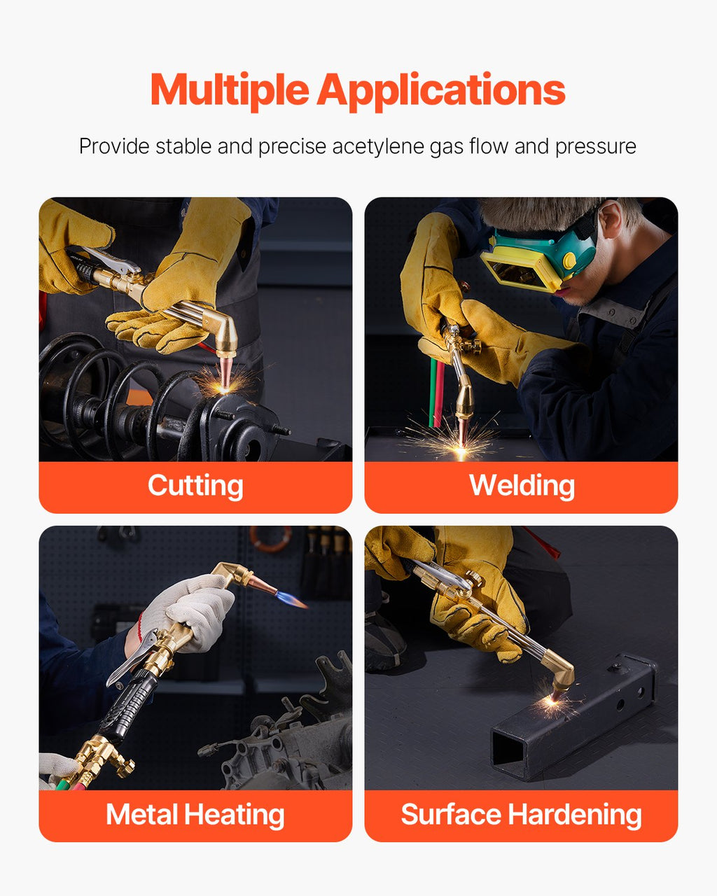 Take on a variety of metalworking tasks with the VEVOR Oxygen Acetylene Torch Kit. This 12-piece gas welding and cutting torch set delivers reliable performance, whether you're welding, brazing, soldering, or cutting. Built with durable brass and a flexible 177-inch rubber hose, it’s designed for safety, precision, and ease of use—making it a versatile companion for professionals and DIY enthusiasts alike.