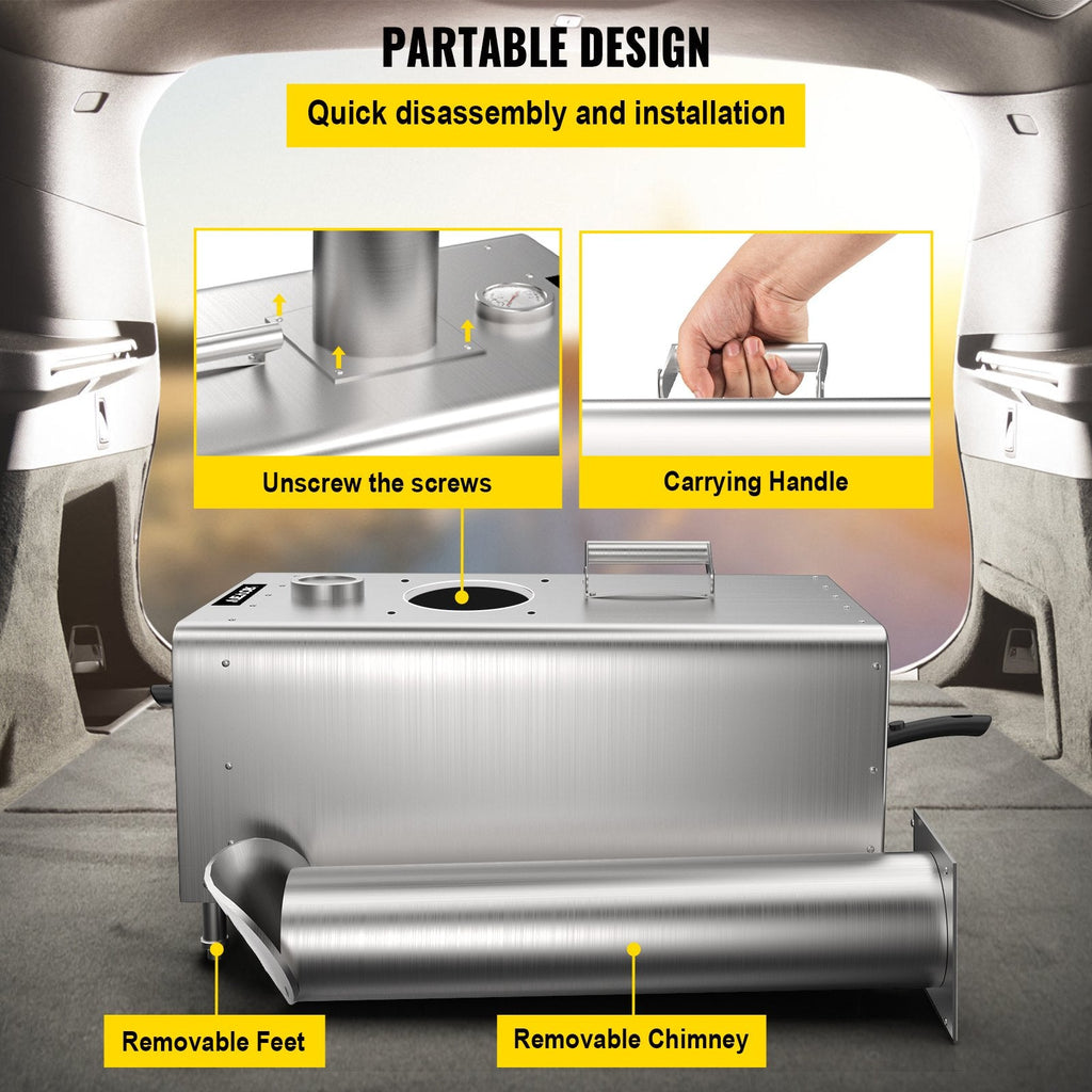 The VEVOR Pellet Pizza Oven is a stainless steel, wood-burning outdoor pizza oven designed for fast, flavorful cooking. With a 12" cooking surface and adjustable feet for stability, this portable oven reaches temperatures up to 1100°F (600°C), making it perfect for crafting authentic, crispy pizzas in minutes. The compact, user-friendly design includes complete accessories for seamless outdoor cooking, while its durable stainless steel construction ensures long-lasting performance. Whether you're hosting a backyard party or enjoying a family dinner outdoors, this pizza oven delivers gourmet results every time.