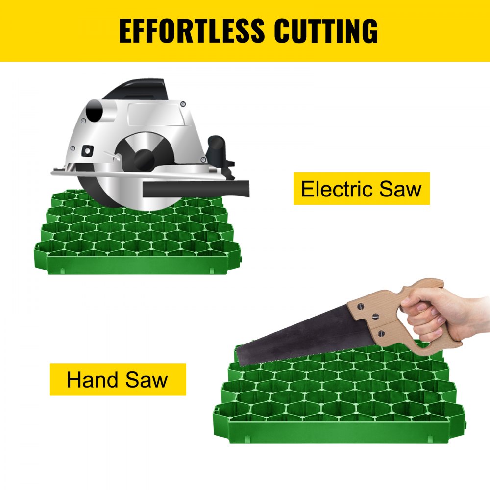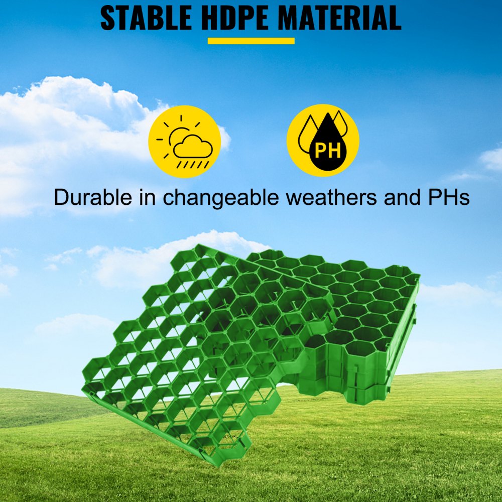 Transform your driveway, parking lot, fire lane, or landscaping project with VEVOR Permeable Pavers. Each pack includes four interlocking green HDPE plastic grids, covering 11 square feet. With a depth of 1.9 inches, these durable pavers create a strong, stable base ideal for gravel or grass installations. Their permeable design promotes water drainage, reduces runoff, and enhances soil health. Quick to install and built to last, they're perfect for eco-friendly and heavy-duty surface reinforcement.