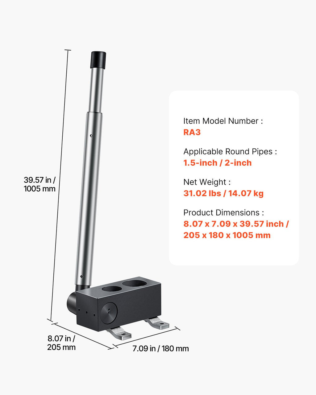 The VEVOR Pipe Notcher (Model RA3) offers professional-grade notching for 1.5" and 2" round pipes, making it a top choice for metalworkers and fabricators. Built with a durable frame and ergonomic handle, it ensures comfortable operation and precise results. The 4-point fixation base provides stability for smooth, controlled notching—ideal for automotive, industrial, and custom fabrication projects.