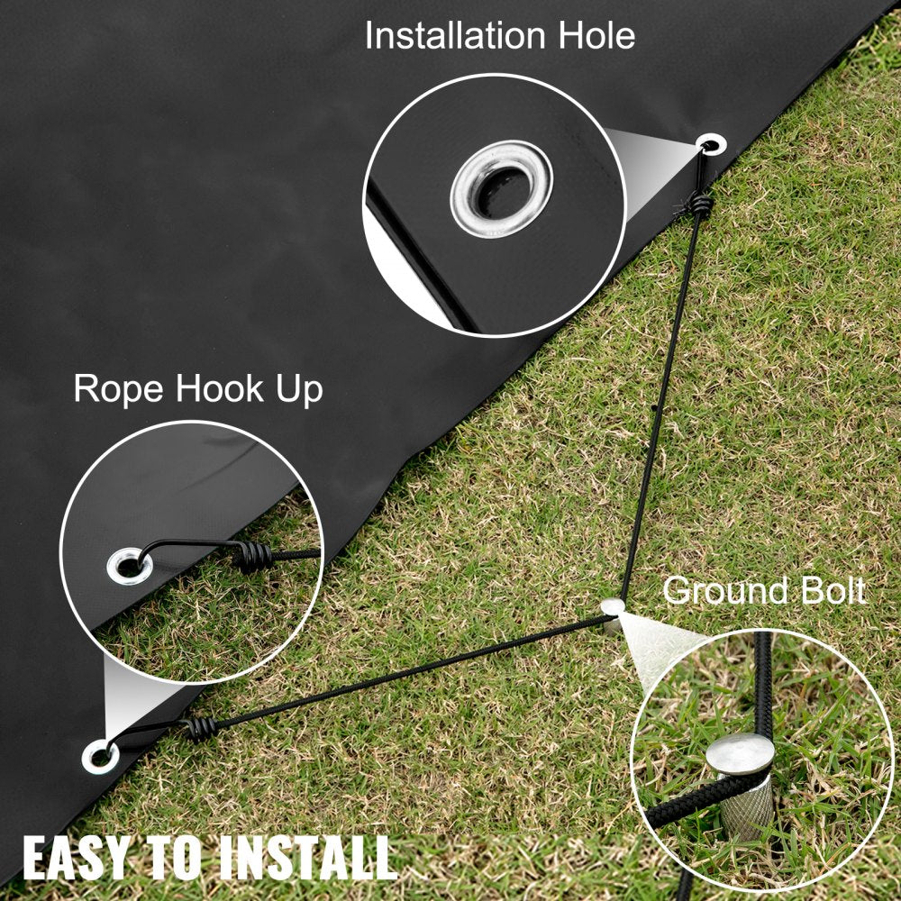 The VEVOR 11.5x16 ft Pool Safety Cover offers reliable protection for your in-ground pool throughout the winter months. Constructed from high-quality 650-680 g/m² PVC material, this black rectangular safety cover is designed to shield your pool from debris, leaves, and harsh weather. Perfect for pools up to 10.5x15.4 ft, the cover provides a snug fit with its 11.5x16.4 ft size. Featuring easy installation, robust protection, and durable 304 stainless steel ground bolts, this cover ensures your pool remains clean, secure, and ready for use after the off-season.