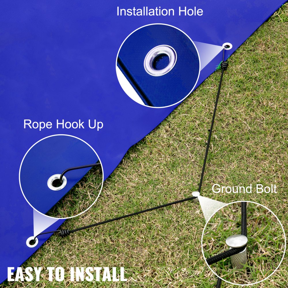 The VEVOR 14.7 ft Dia. Pool Safety Cover is a reliable and durable solution for protecting your round in-ground pool during the winter months. Constructed from high-quality 650-680 g/m² PVC material, this blue safety cover provides solid protection against debris, leaves, and dirt. It offers absolute security with its heavy-duty design, ensuring that your pool stays clean and safe. Featuring easy installation and 304 stainless steel ground bolts for extra strength, this cover is perfect for pools with a diameter of 13.8 ft. This cover is ideal for year-round pool maintenance and winter protection.