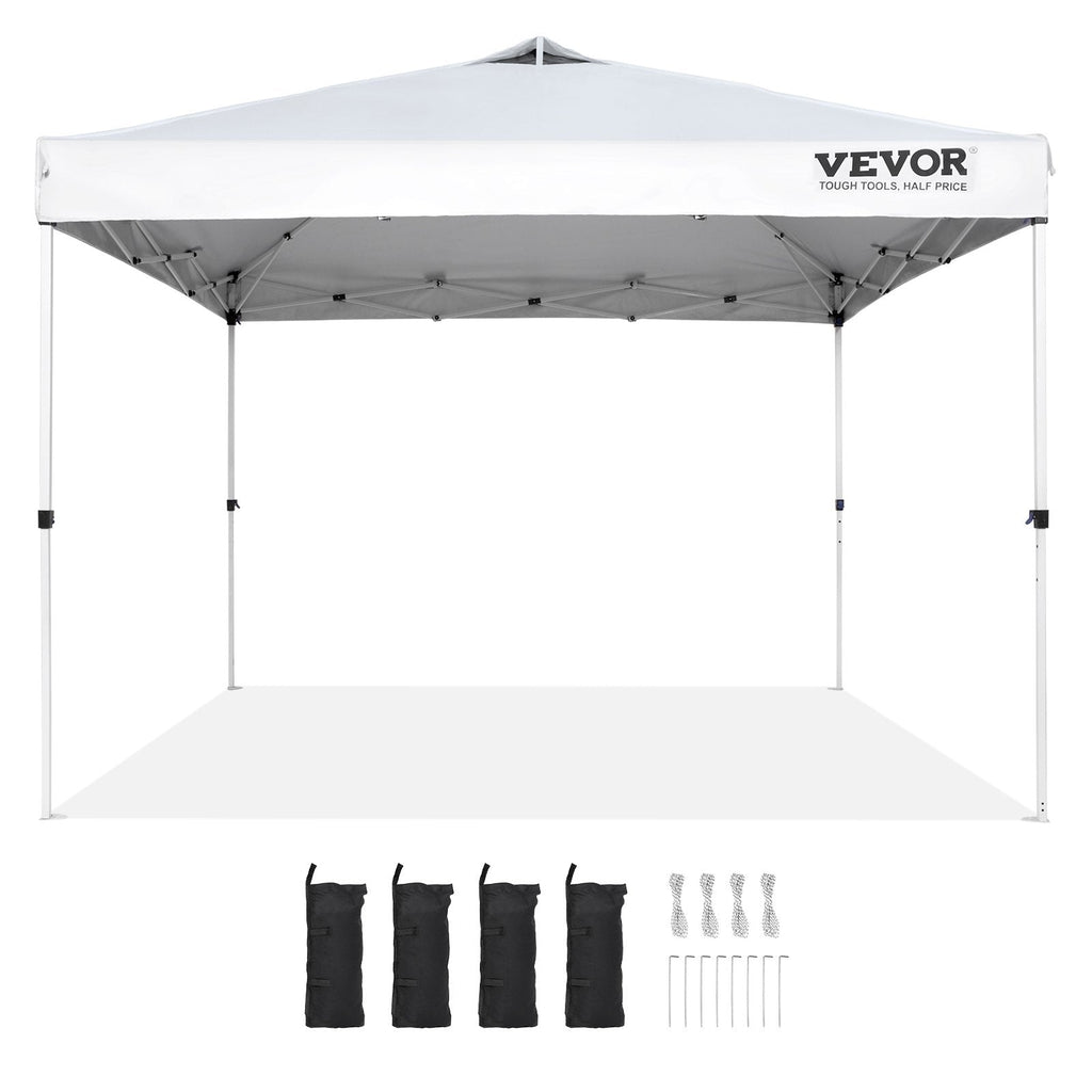The VEVOR Pop Up Canopy Tent is your perfect companion for outdoor events, offering reliable shelter and shade at any gathering. Designed for easy setup and portability, this 10 x 10 ft canopy features a strong metal frame and a high-quality 250D PU silver-coated tarp, ensuring maximum durability and weather resistance. Whether you're hosting a party, camping, or running a commercial event, this canopy provides the perfect sun and rain shelter. The tent includes a portable roller bag and 4 sandbags for added stability, making it an excellent choice for outdoor adventures. With an adjustable frame height and a waterproof cover, this canopy is ready to go wherever you need it.