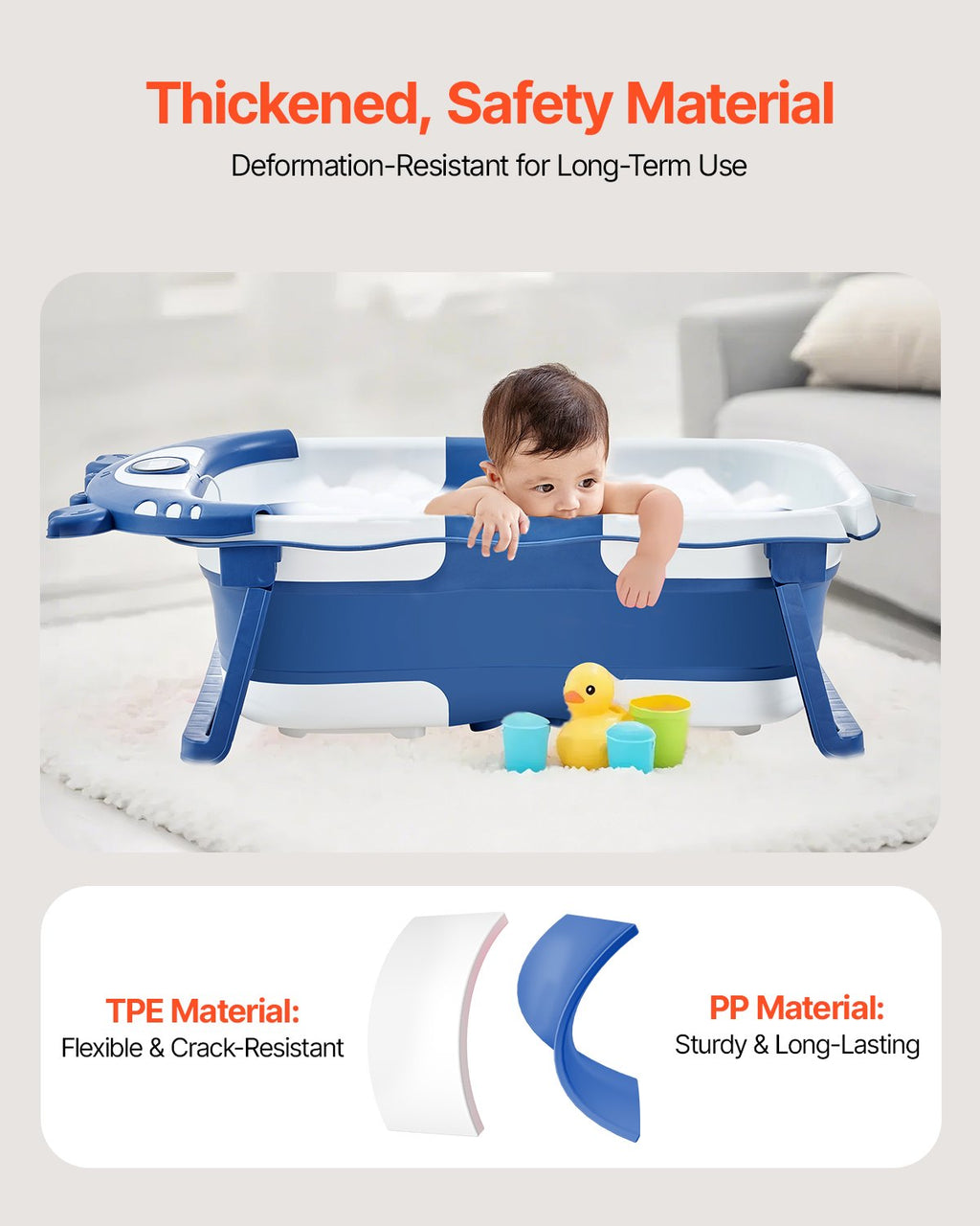 5 Gal Large Capacity Bathtub: Spacious design with a 7-gallon max capacity (27L) to accommodate growing babies