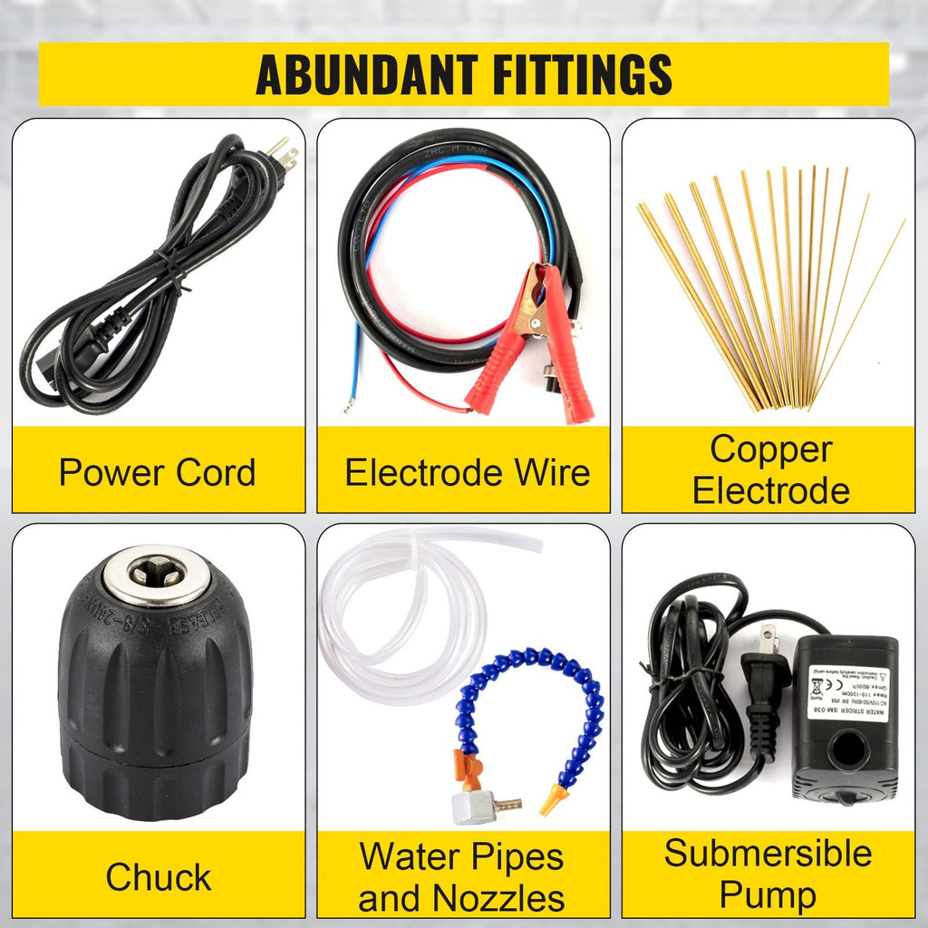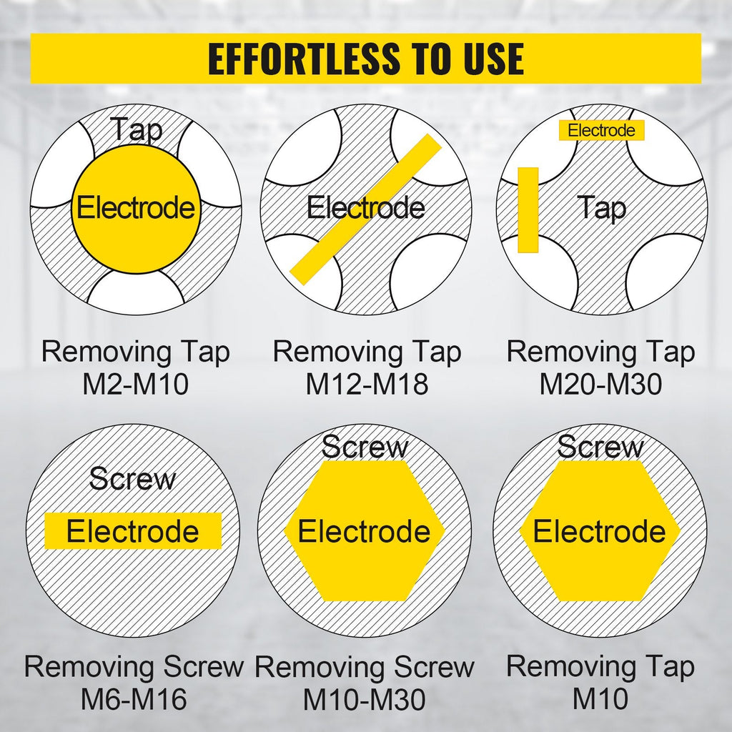 The VEVOR Portable EDM Machine is a powerful 800W electric discharge machine designed for efficient tap removal and disintegration. Featuring adjustable depth settings from 0.039" to 3.94", it offers precise control for tackling broken taps and drill drifts in blind holes. Equipped with an auto shut-off function, this machine ensures safe operation while providing versatile performance ideal for maintenance and repair tasks.