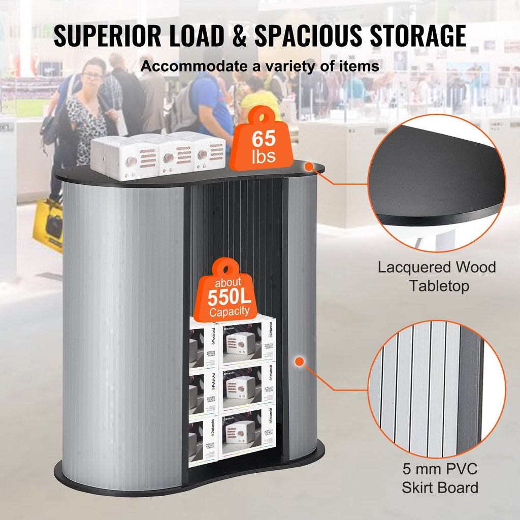 Spacious and Sturdy: The 35.43” x 19.29” tabletop supports up to 65 lbs of items, offering ample space for your products and promotional materials.