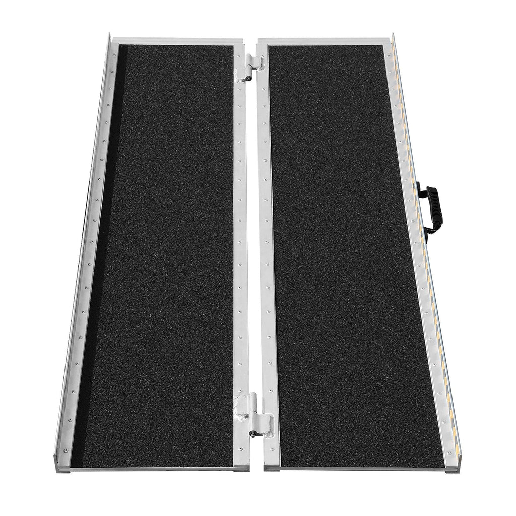 The VEVOR 4 ft Portable Wheelchair Ramp provides a safe and durable solution for mobility needs, designed for easy access to doorways, stairs, and curbs. With an impressive 800 lbs capacity, this foldable ramp offers a non-slip aluminum alloy surface for maximum stability and security. Its convenient foldable design ensures easy storage and transport, while the built-in handle makes it simple to carry wherever you need it.