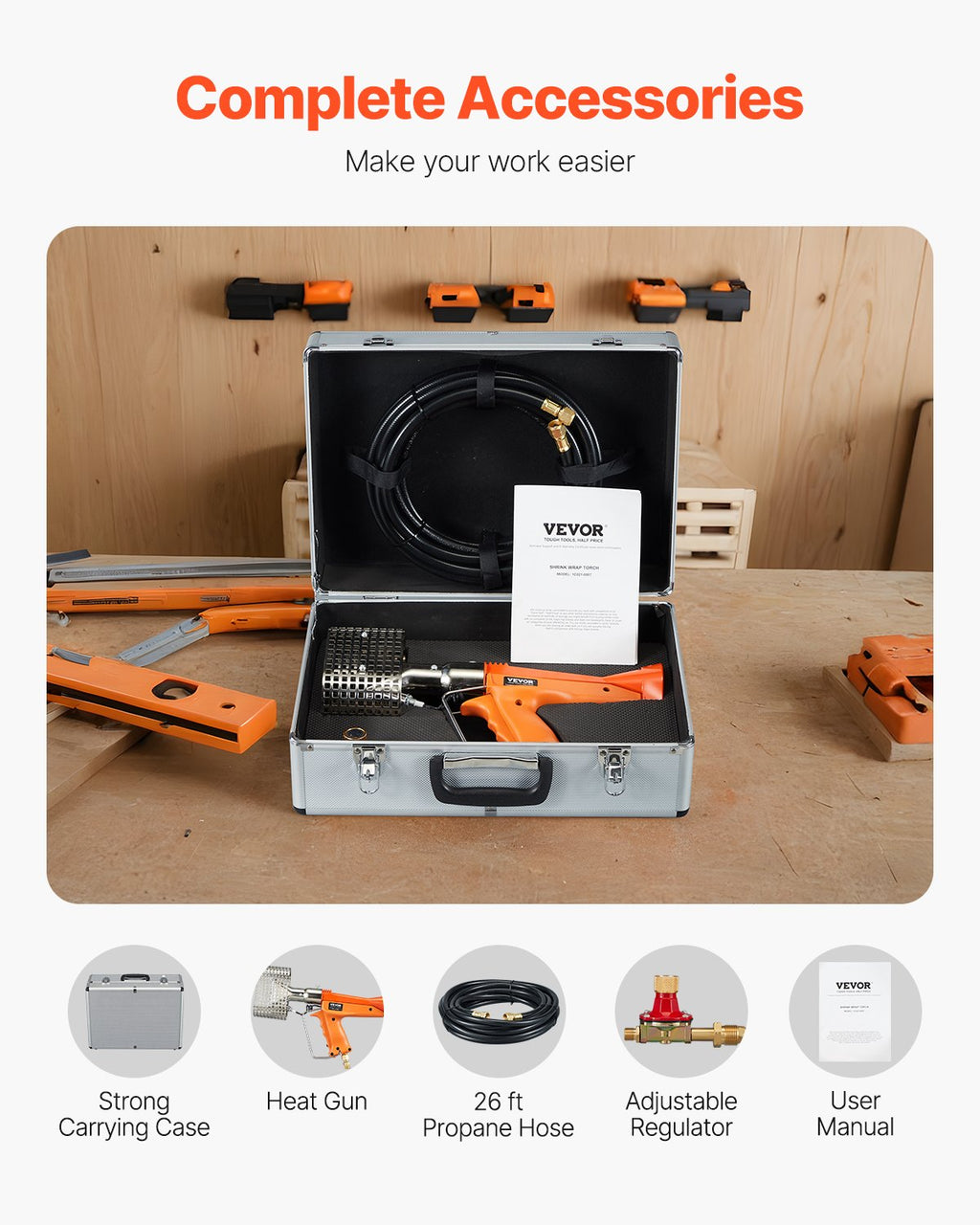 Complete Accessories: Comes with a regulator for precise control of temperature and airflow, and a carry case for easy transportation.