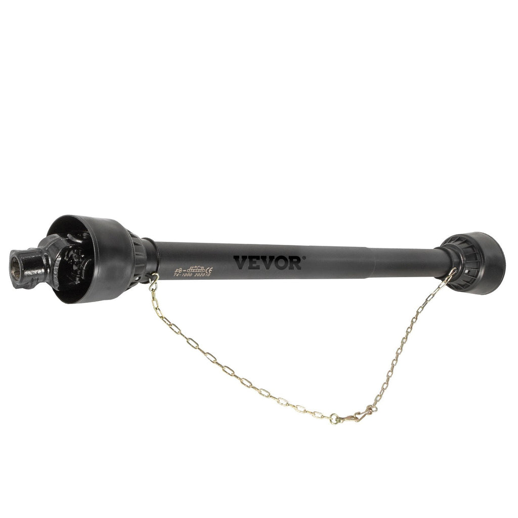 The VEVOR PTO Shaft is a durable and high-performance driveline component designed for transferring power from your tractor to a variety of implements. This Series 4 PTO drive shaft features a 1-3/8" 6-spline end on the tractor side and a 1-3/8" round end on the implement side, delivering up to 53hp at 1000 RPM. Made from carburized 20CrMnTi steel, Q345 steel, and reinforced with plastic shielding, it ensures maximum strength and reliability. Adjustable from 39" to 55", this shaft is ideal for use with brush hogs, finish mowers, and rotary cutters.