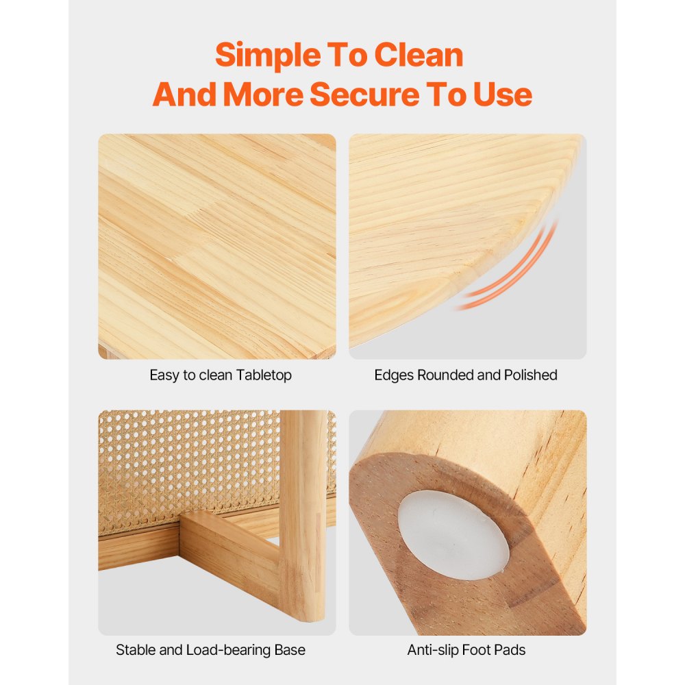 Enhance your living room with the elegant VEVOR Round Rattan Coffee Table. Featuring a premium combination of rubberwood frame and PE rattan, this stylish coffee table offers both beauty and practicality. The spacious, round tabletop provides ample space for your living room essentials, while the solid construction ensures lasting durability. With a load capacity of 250 lbs, this table is perfect for holding drinks, decor, or snacks. Its easy assembly and versatile design make it a great addition to any home, whether you’re relaxing with family or entertaining guests.
