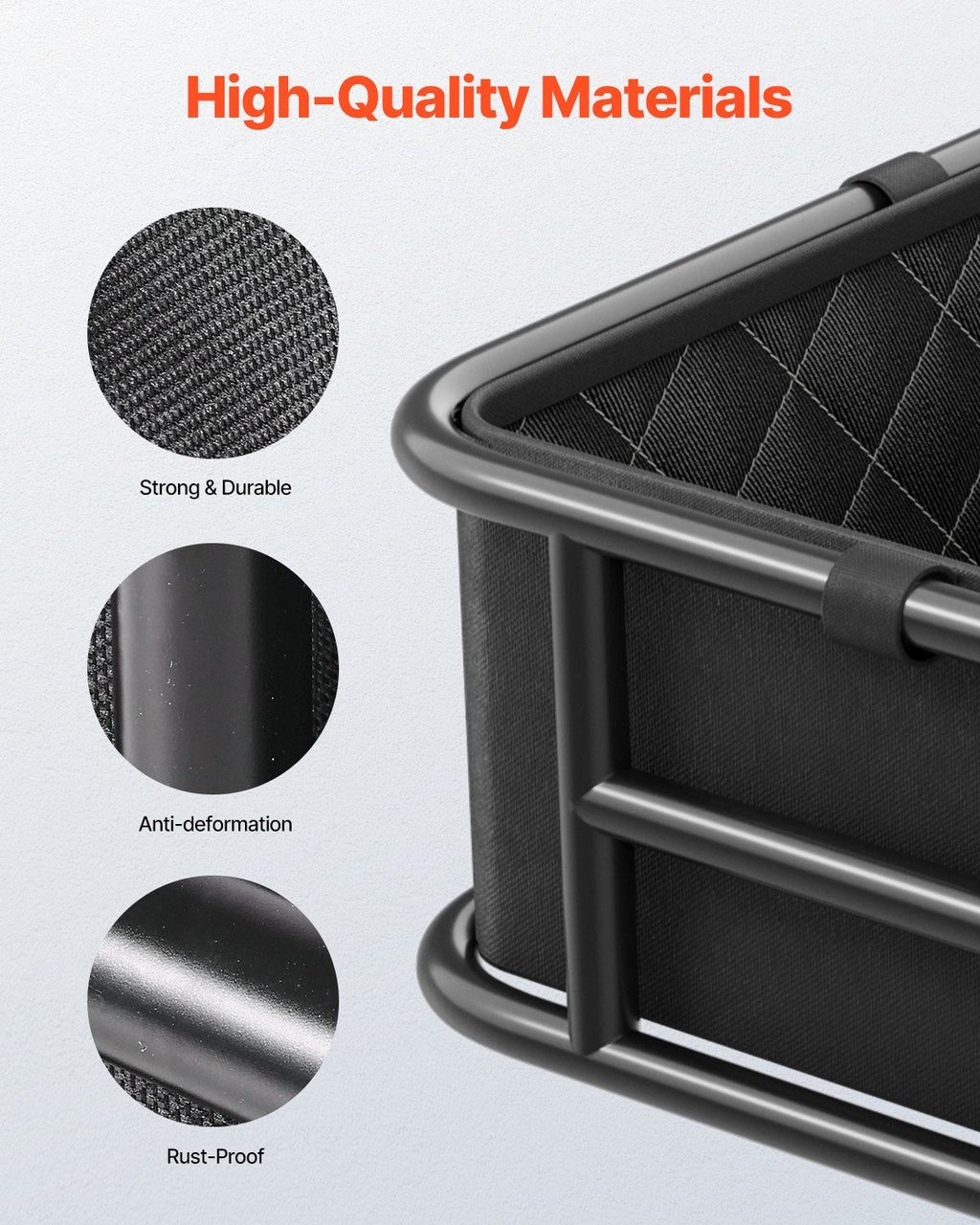 Upgrade your cycling convenience with the VEVOR Rear Bike Basket—an ideal companion for your daily commutes, grocery runs, or pet outings. Crafted for durability and ease of use, this large rear bicycle basket features a sturdy steel frame that supports up to 100 lbs (45 kg). Its spacious 17 x 13 x 6 inch (435 x 330 x 155 mm) design ensures ample room for groceries, bags, or even small pets. It comes equipped with a rainproof liner and cargo net to secure your items in all weather conditions. The rust-resistant finish and quick-installation mechanism make it a reliable and low-maintenance addition to your bike.