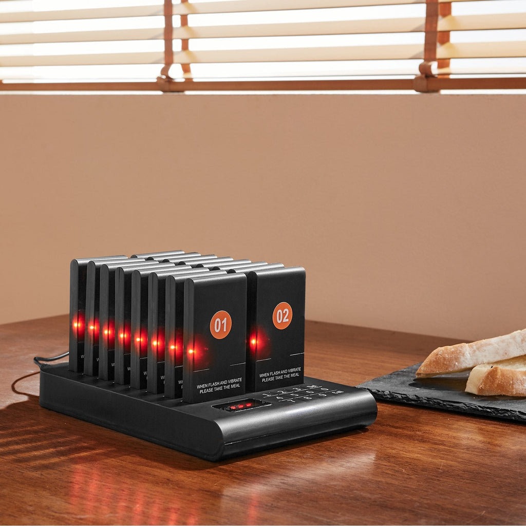 16 Paging Buzzers: Includes 16 rectangular sub-units with vibration and flashing alerts for clear, silent notifications.