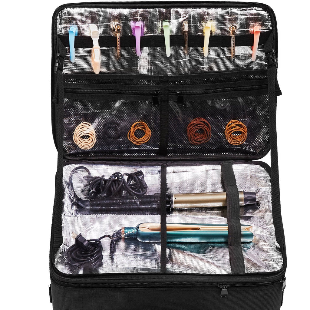 Organize and transport your professional makeup tools with the VEVOR Rolling Makeup Train Case. With a large 3-tier design, this makeup storage organizer features a spacious interior for all your cosmetics, tools, and accessories. The case is made of durable, waterproof Oxford fabric for long-lasting use and is designed for easy transport with a handle, wheels, and adjustable strap. The adjustable bottom divider helps you customize the storage to suit your needs. Whether you're a makeup artist or simply need efficient storage, this case offers both practicality and style.