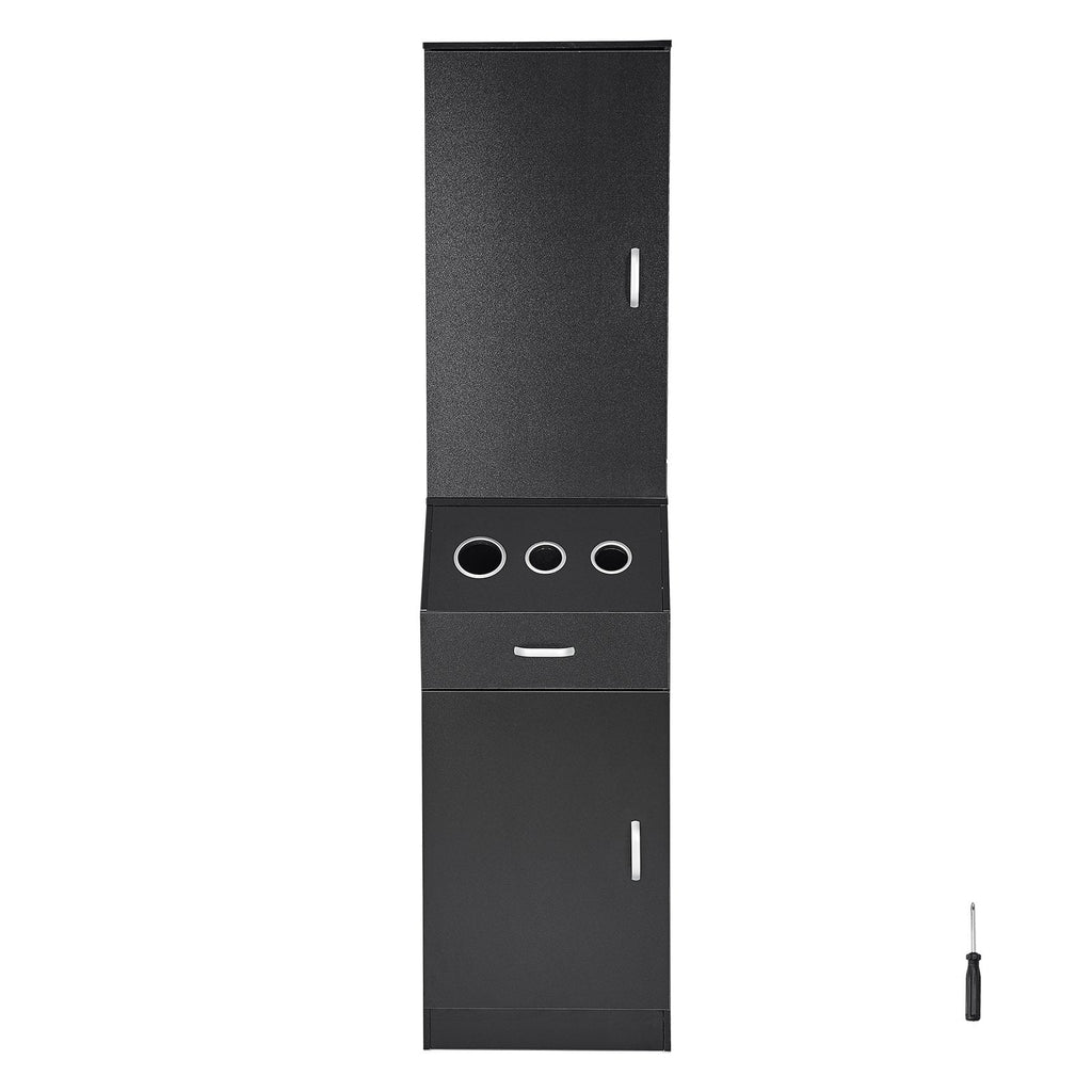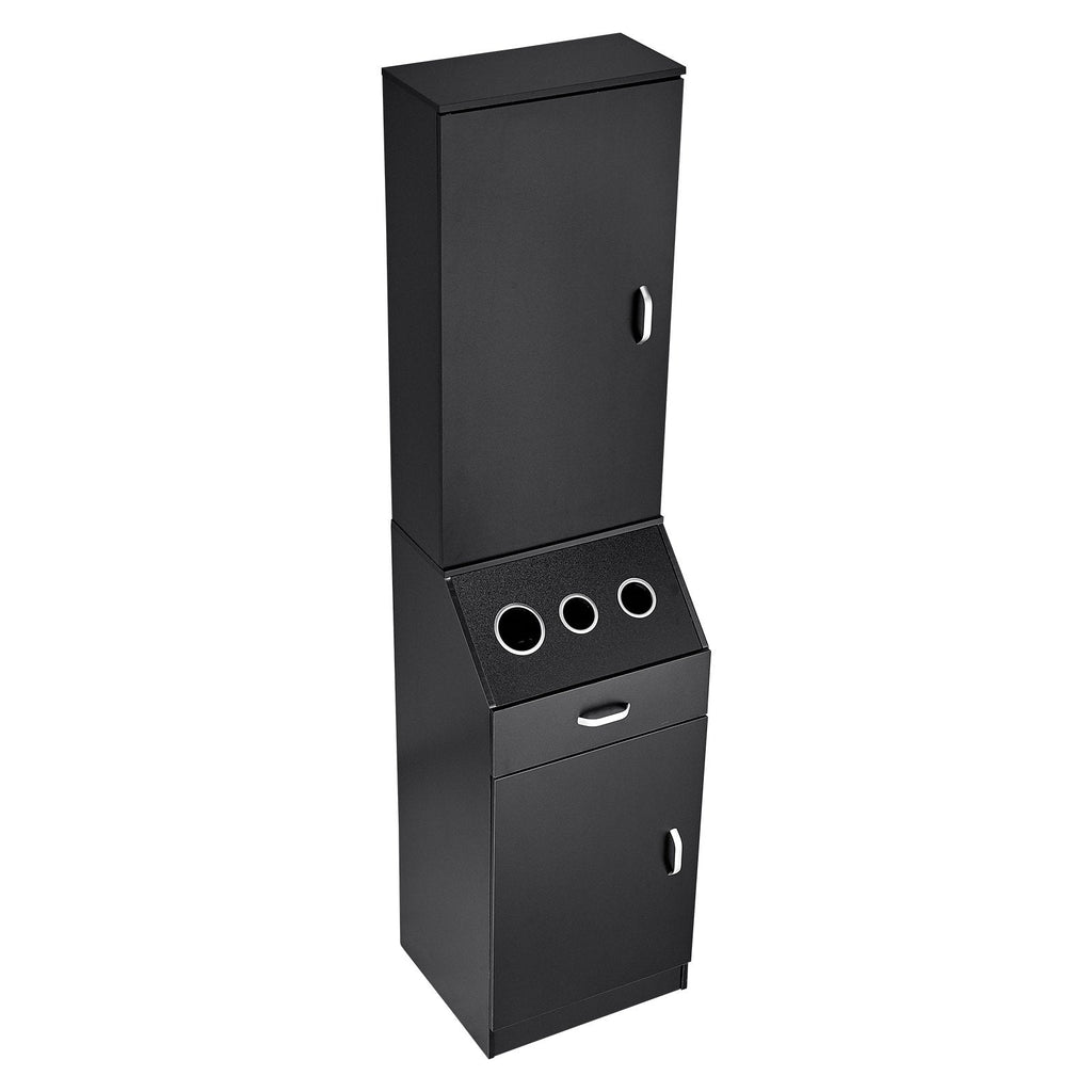 Upgrade your salon setup with the VEVOR Salon Storage Cabinet—your all-in-one solution for organized, efficient hair styling. Designed with the needs of professional stylists in mind, this matte black station features ample storage space, including a spacious cabinet, drawer with lock, and three heat-resistant sleeves for hot tools like hair dryers and flat irons. Constructed with durable MDF and heat-resistant alloy, it ensures lasting performance and sleek aesthetics in any salon, spa, or barbershop.