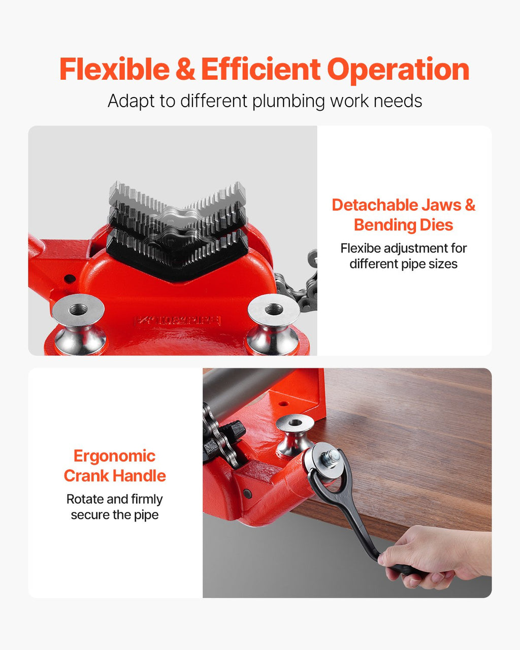The VEVOR Screw Bench Chain Vise is a heavy-duty, industrial-grade tool designed for pipework and repair applications. With the capacity to accommodate pipes ranging from 1/2 inch to 8 inches in diameter, this vise ensures secure and precise clamping with its anti-slip jaws and a robust 34.6-inch chain. Crafted from durable cast iron, it provides superior strength and stability, even under heavy loads, ensuring long-term, reliable performance. The ergonomic crank handle allows for smooth, easy adjustments, providing efficient operation when securing pipes for threading, cutting, or welding tasks. Perfect for workshops, industrial settings, or construction sites, the VEVOR chain vise excels in demanding environments requiring strong, stable support. With product dimensions of 14.8 x 12.6 x 5.9 inches (375 x 320 x 150 mm) and a weight of 35.6 lbs (16.22 kg), it offers the perfect balance of compactness and heavy-duty capability.