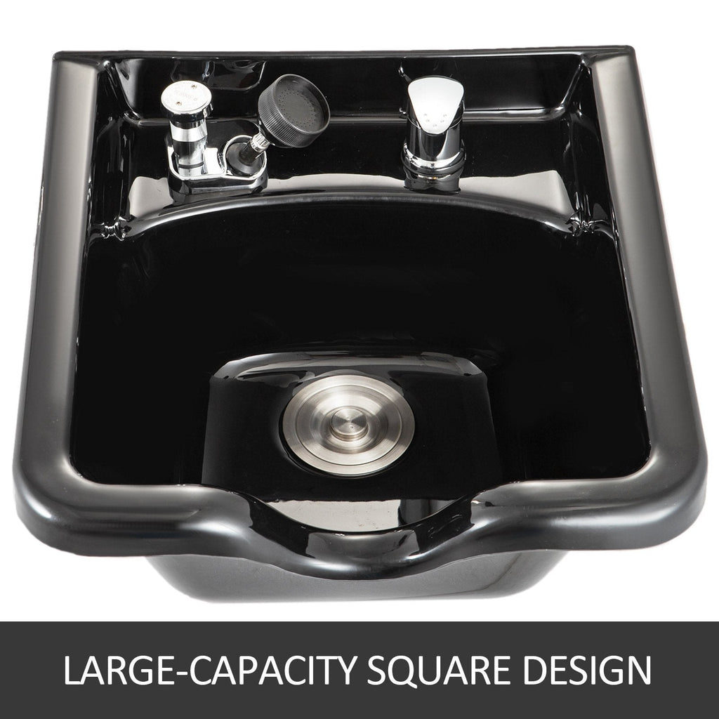 Designed for comfort and durability, the VEVOR Shampoo Basin is the perfect hair washing sink for salons and spas. Made from sturdy ABS plastic, this black basin features a water-protective design to keep your workspace dry and clean. Its ergonomic shape ensures comfortable use for both hair stylists and clients. Easy to install and maintain, this versatile basin is ideal for professional beauty salons or personal use.