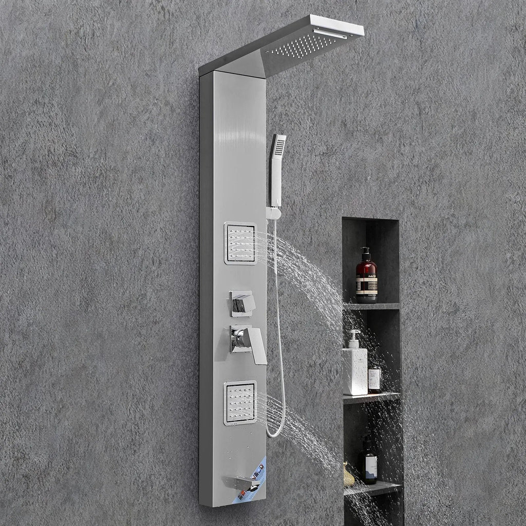 5-in-1 Shower System: Combines rainfall, waterfall, 2 large massage body jets, bathtub spout, and handheld showerhead. Provides a versatile showering experience, from quick rinses to full-body relaxation.