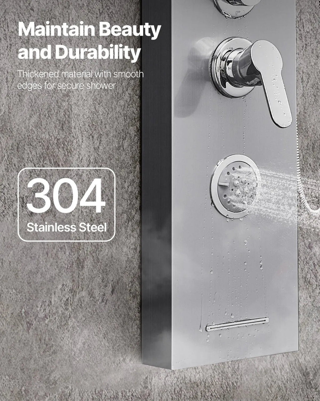 Transform your bathroom into a spa-like retreat with the VEVOR Shower Panel Tower System. Featuring a 53-inch brushed stainless steel column, dual showerhead modes, 3 body jets, handheld shower, and tub spout, this 5-in-1 system offers luxury, versatility, and durability for an enhanced shower experience.