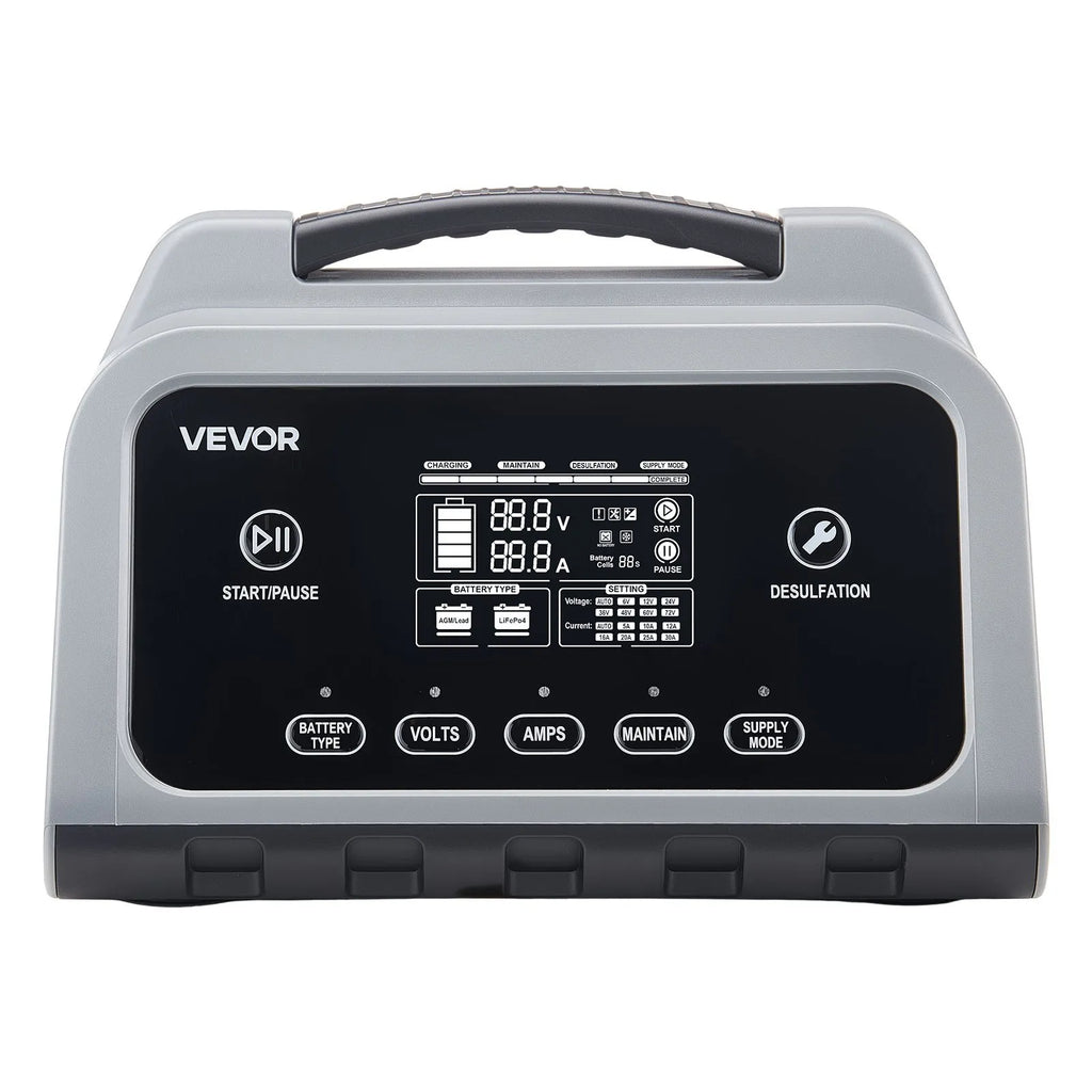 Power up and maintain your batteries with confidence using the VEVOR 25A Smart Battery Charger. Designed for versatility and ease of use, this charger supports a wide range of battery types and voltages, making it a reliable solution for vehicles and equipment of all sizes. Whether you’re charging, maintaining, or restoring a battery, its intelligent charging system automatically adjusts for safe and efficient performance.