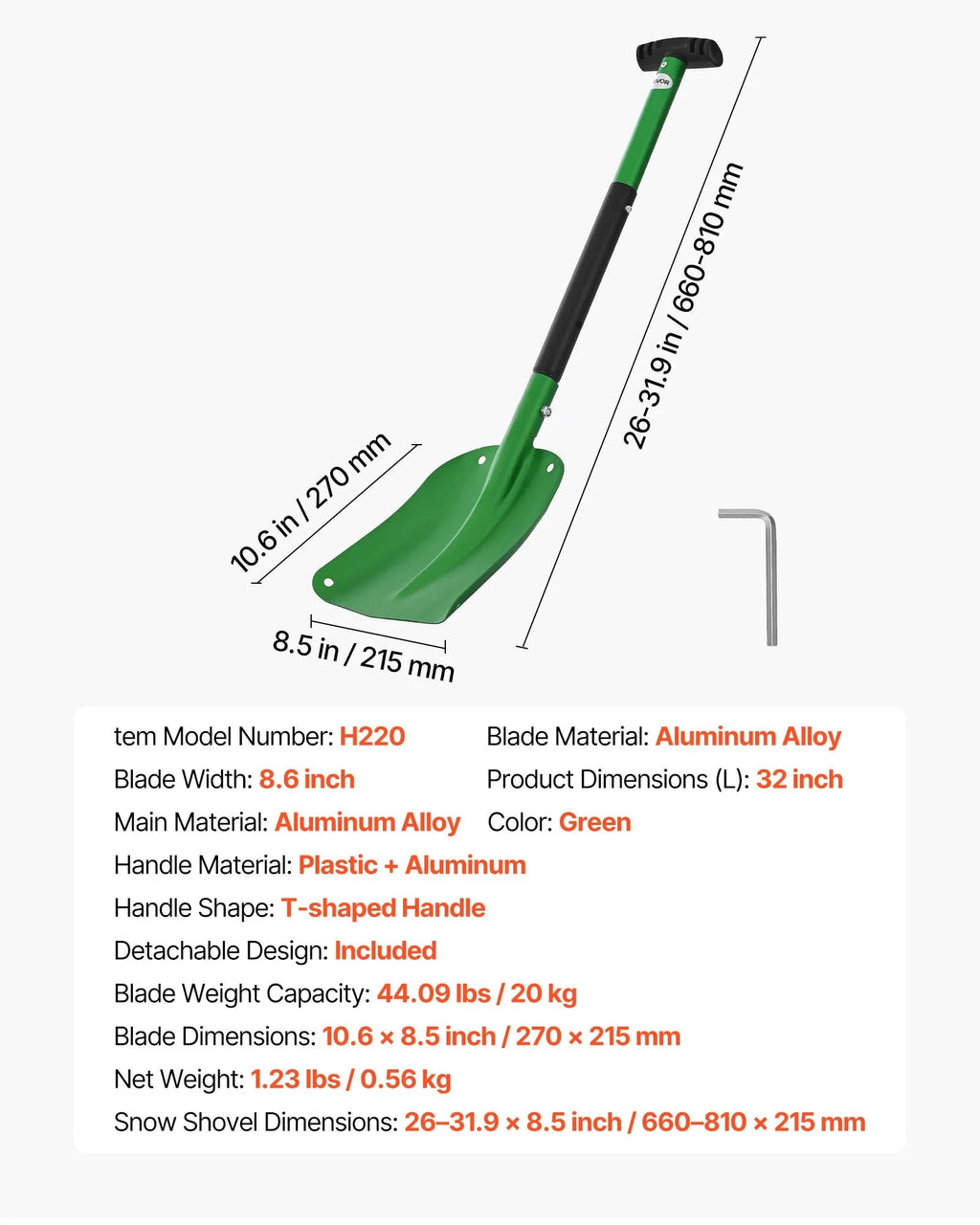 Let your winter cleanup become easier with the VEVOR Snow Shovel for Driveway, a lightweight yet durable snow-removal tool designed for home use, travel, and emergencies. Made from high-strength aluminum alloy, this compact shovel offers efficient performance whether you are clearing snow from your driveway, car front, stairs, or camping site. Its detachable and adjustable design makes it easy to store, carry, and adapt to different users.