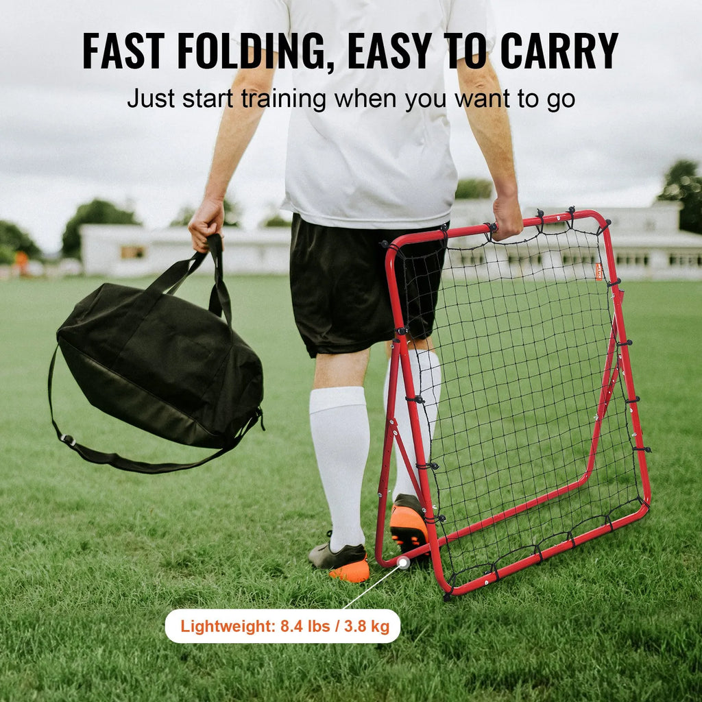 The VEVOR Soccer Rebounder Rebound Net is a portable and versatile training tool designed to improve passing, shooting, and ball control skills for soccer players of all ages. Featuring a 39" × 39" kick-back net with adjustable rebound angles, it allows players to practice different return trajectories for dynamic training sessions. Built with a strong iron tube frame and durable PE netting, the rebounder provides stability and long-lasting performance during intense practice. Its lightweight structure and quick setup design make it easy to move, store, and use anywhere—whether in the backyard, on the field, or during team training sessions.