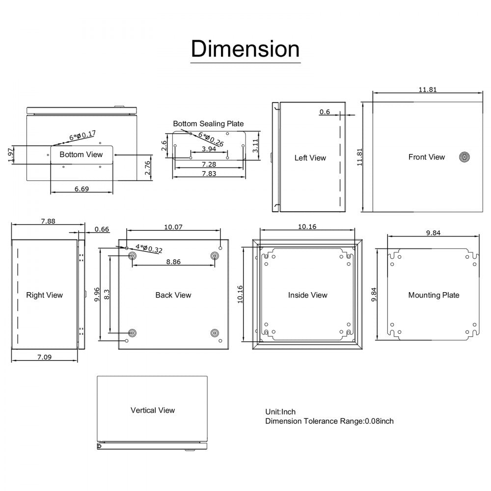 The VEVOR Steel Electrical Box is a durable and weatherproof enclosure designed to safeguard electronic equipment in demanding environments. Measuring 12 x 12 x 8 inches, this carbon steel box features a hinged cover for easy access and an IP65 rating that provides reliable protection against dust and water. Perfect for indoor and outdoor use, it mounts securely to walls with an included mounting plate. Its sturdy construction ensures reliable protection for various electrical and electronic installations.
