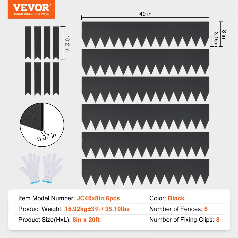 Enhance the look of your yard or garden with the VEVOR Steel Landscape Edging. This 6-pack of galvanized steel strips, each measuring 40" L x 8" H, provides durable, long-lasting borders that are perfect for creating neat and defined garden beds, lawn areas, and landscaping designs. The bendable steel allows for easy shaping to fit any space, while the included clips make installation a breeze. Ideal for both soft and hard soil, this edging will help keep your garden neat and tidy while also adding a stylish, modern touch.
