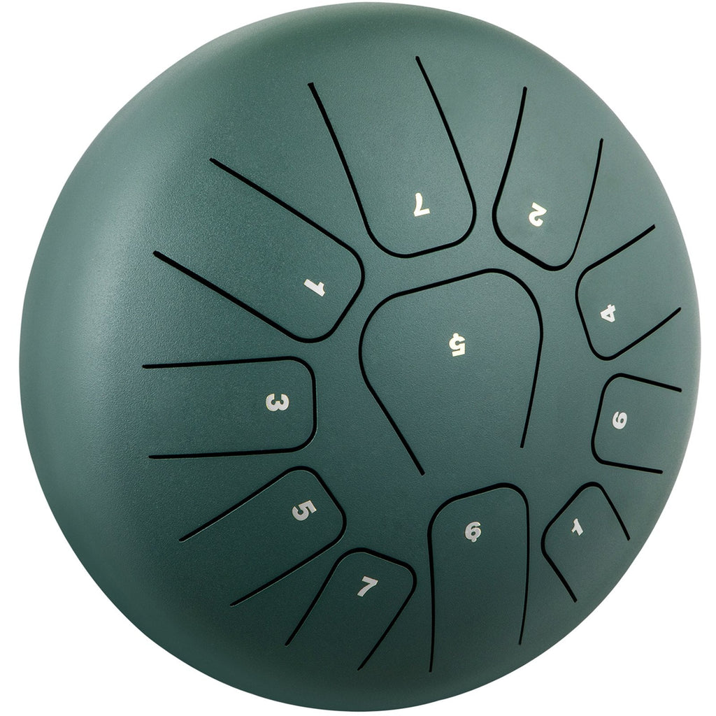 The VEVOR Steel Tongue Drum is an 8-inch diameter percussion instrument featuring 11 musical notes, perfect for beginners and experienced musicians alike. Crafted from durable steel with a unique mineral green finish, this drum produces rich, resonant tones that inspire creativity and relaxation. The complete set includes a carrying bag, music book, mallets, and a mallet bracket, providing everything you need to start playing right away.