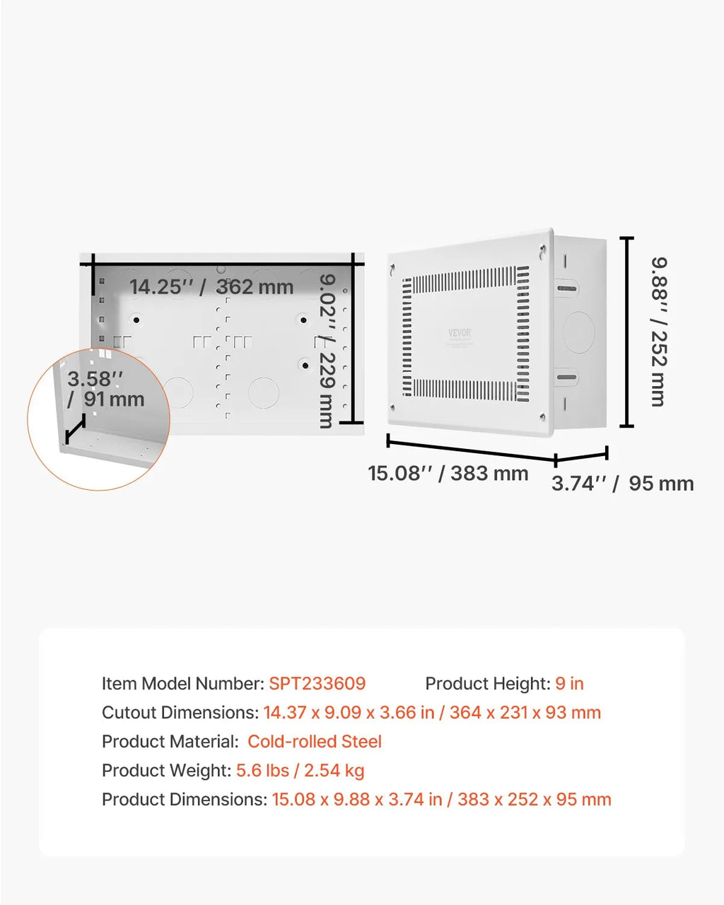 The VEVOR 9 in Recessed In-Wall Structured Media Enclosure TV Media Box with Cover offers a compact and efficient solution for organizing home networking and TV wiring. Designed for recessed in-wall installation, this enclosure conceals routers, modems, cable splitters, and other low-voltage equipment behind a durable steel cover, creating a clean and professional appearance.