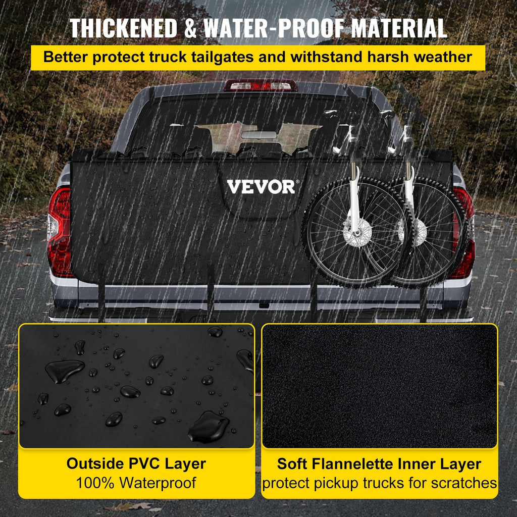 The VEVOR Tailgate Pad is a heavy-duty solution for transporting up to 6 bikes with ease and security. Measuring 63 inches wide, this pad is compatible with most middle and large pickup trucks, offering reliable protection for both your vehicle and bikes. Built with a tough PVC outer layer, it withstands harsh weather and rugged use. The integrated tool pocket adds storage convenience, while adjustable straps ensure a snug, secure fit during transport. Whether you're heading to the trails or organizing a group ride, this upgraded tailgate pad delivers durability, protection, and simplicity.