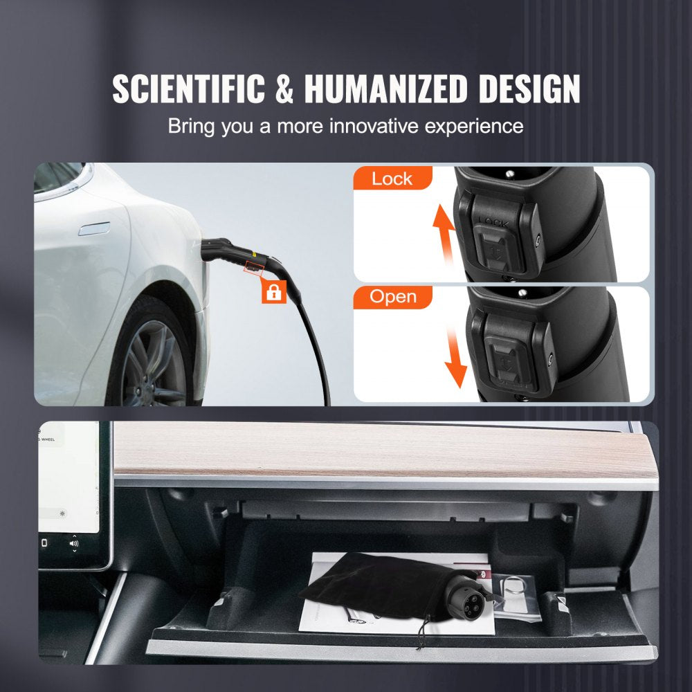 The VEVOR Tesla to J1772 Charging Adapter offers a high-performance solution for powering J1772-compatible electric vehicles using Tesla charging equipment. With a maximum current of 48A and voltage support of 240V, this adapter ensures fast and efficient charging. Its robust design features anti-drop locking, IP65 weatherproof protection, and an anti-pull safety mechanism to guarantee a secure connection in any environment. Compact and lightweight, it comes with a portable storage bag for easy transport and storage—making it an essential tool for EV owners on the go.