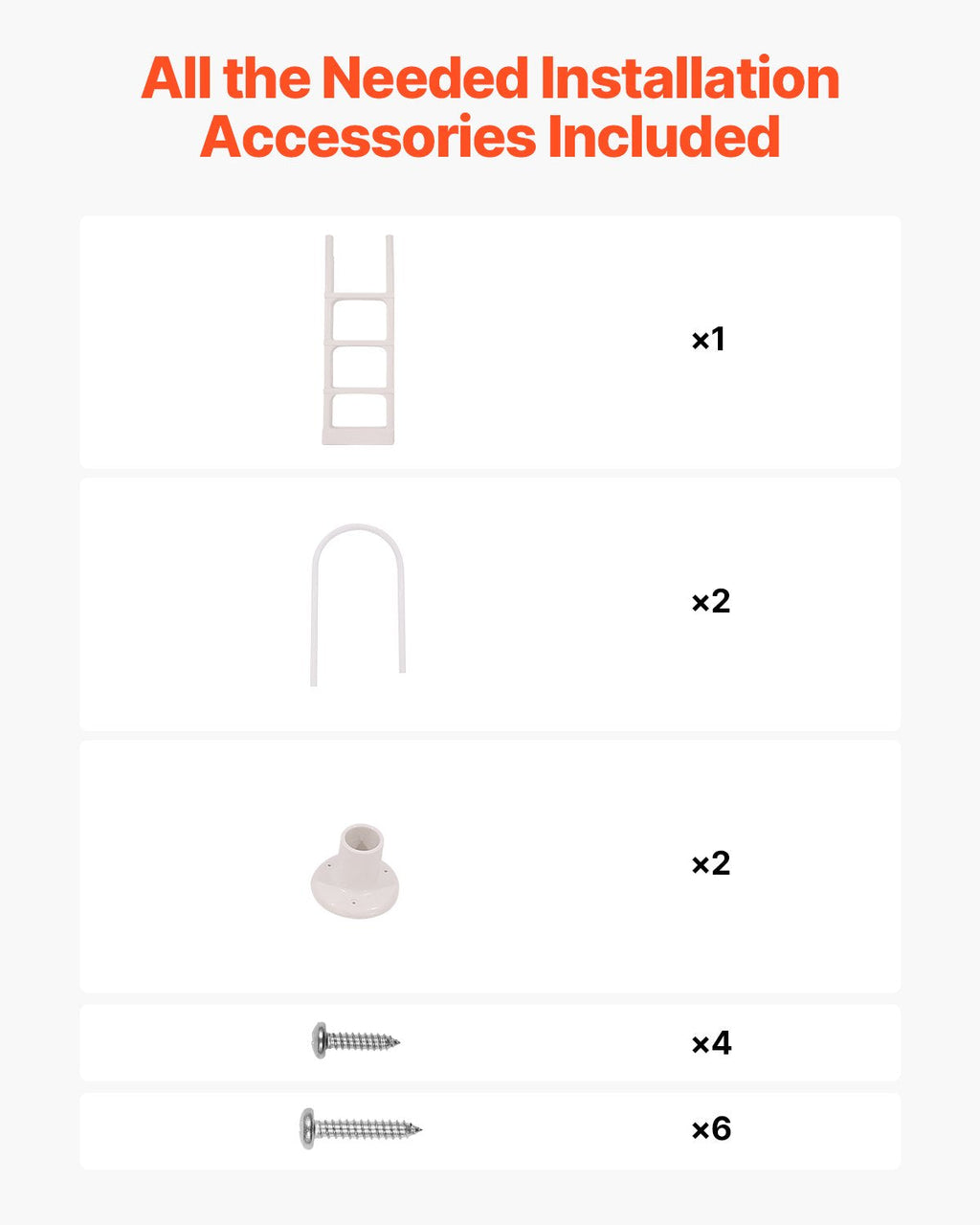 The VEVOR Thickened 4-Step Pool Ladder is designed for ease of use, security, and durability, providing a safe and reliable entry and exit solution for pools ranging from 48 to 54 inches in height. Featuring two sturdy handrails and a robust 300 lbs weight capacity, this ladder ensures users can easily and safely access the pool. Made from premium plastic PE material, it’s built to withstand both indoor and outdoor use, making it perfect for residential and commercial pools alike. The user-friendly structure allows for easy installation, while the weather-resistant build guarantees long-lasting performance.